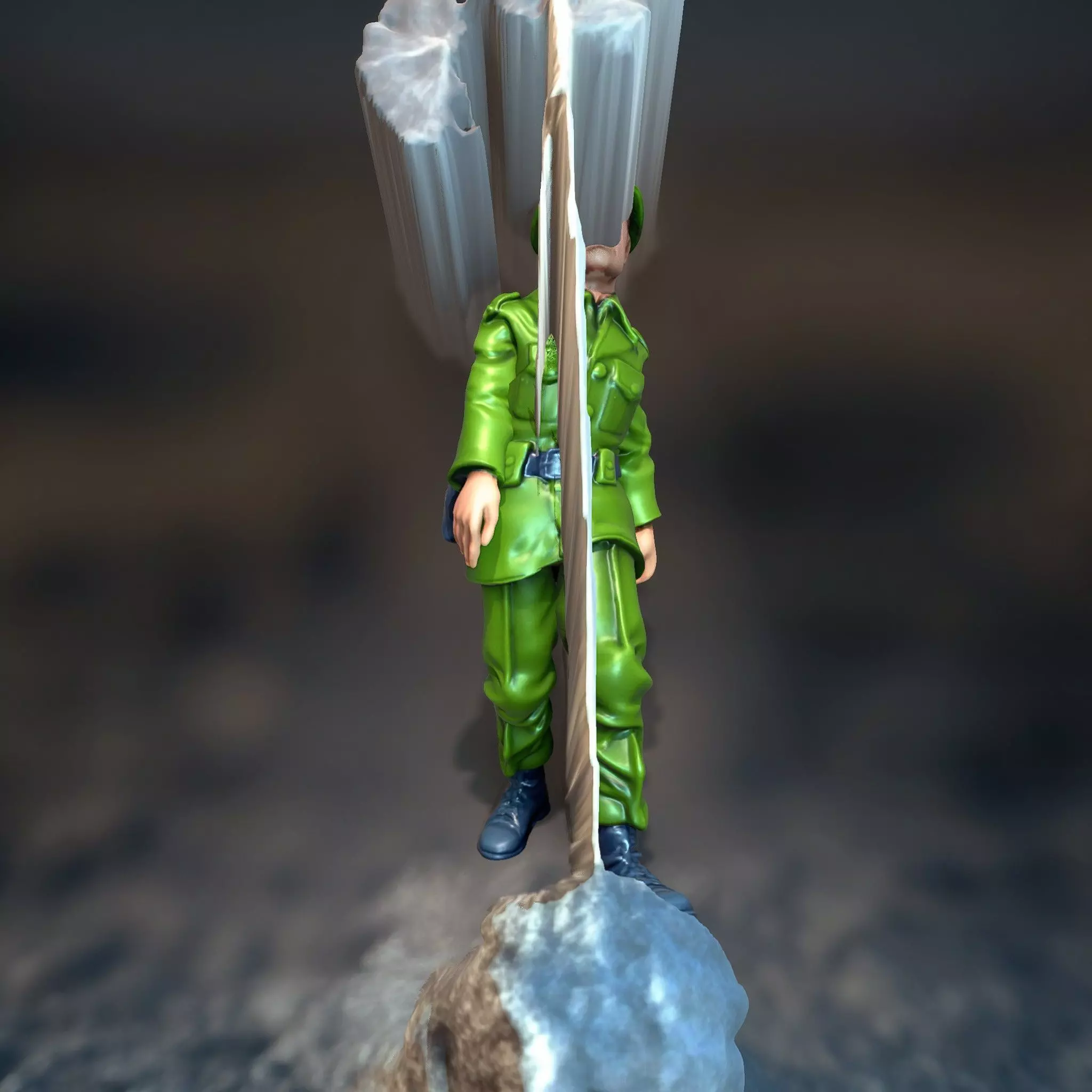 This 3D model represents a military infantryman in a green uniform, designed for versatile use in gaming and simulation. It features precise detailing of the uniform and gear, making it ideal for historical games, training simulations, or animated scenes. The model's textures are PBR, Diffuse, NormalMap, and reflection/roughness/metallic, tailored for all modern rendering engines. Each model has 3 levels of detail: low-poly (1000 triangles for mobile), middle-poly (10 000 triangles for environment), and high-poly (100 000 triangles), which allows for the use of this model in production rendering (such as 3ds max, Maya, Cinema4D, Blender, Vray/Corona/Cycles, and all others), game engines (Unity and Unreal compatible), and interactive presentations, providing a choice of detail based on the LOD System principle. All models are accurately unwrapped with no overlapping UV. Textures are 4096*4096 in size. If you like this model, please leave a comment and a like.