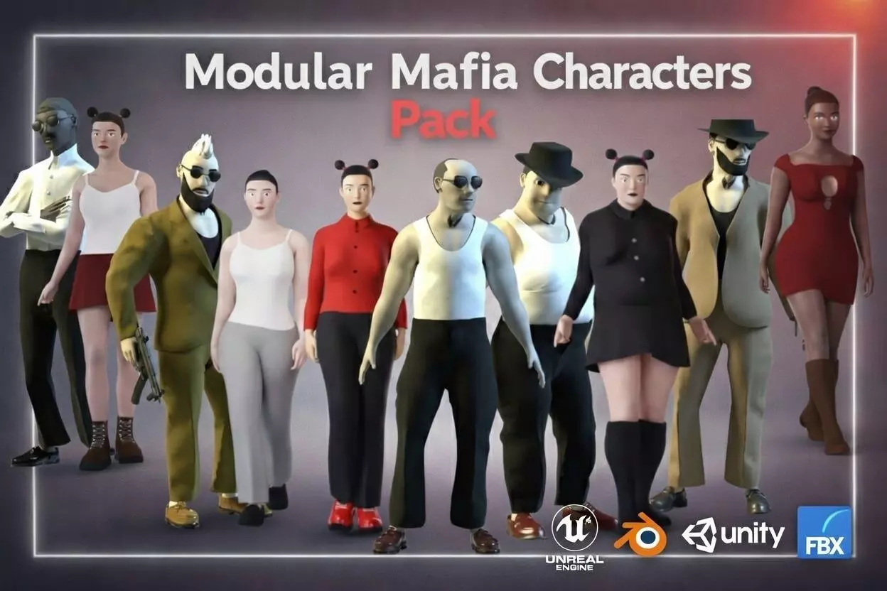 This pack includes fully modular male and female stylized mafia characters, designed for high-quality game development and cinematics. All models are created and tested for Unreal Engine 5.3–5.7. Native UE project files are included for direct use and instant compatibility.
