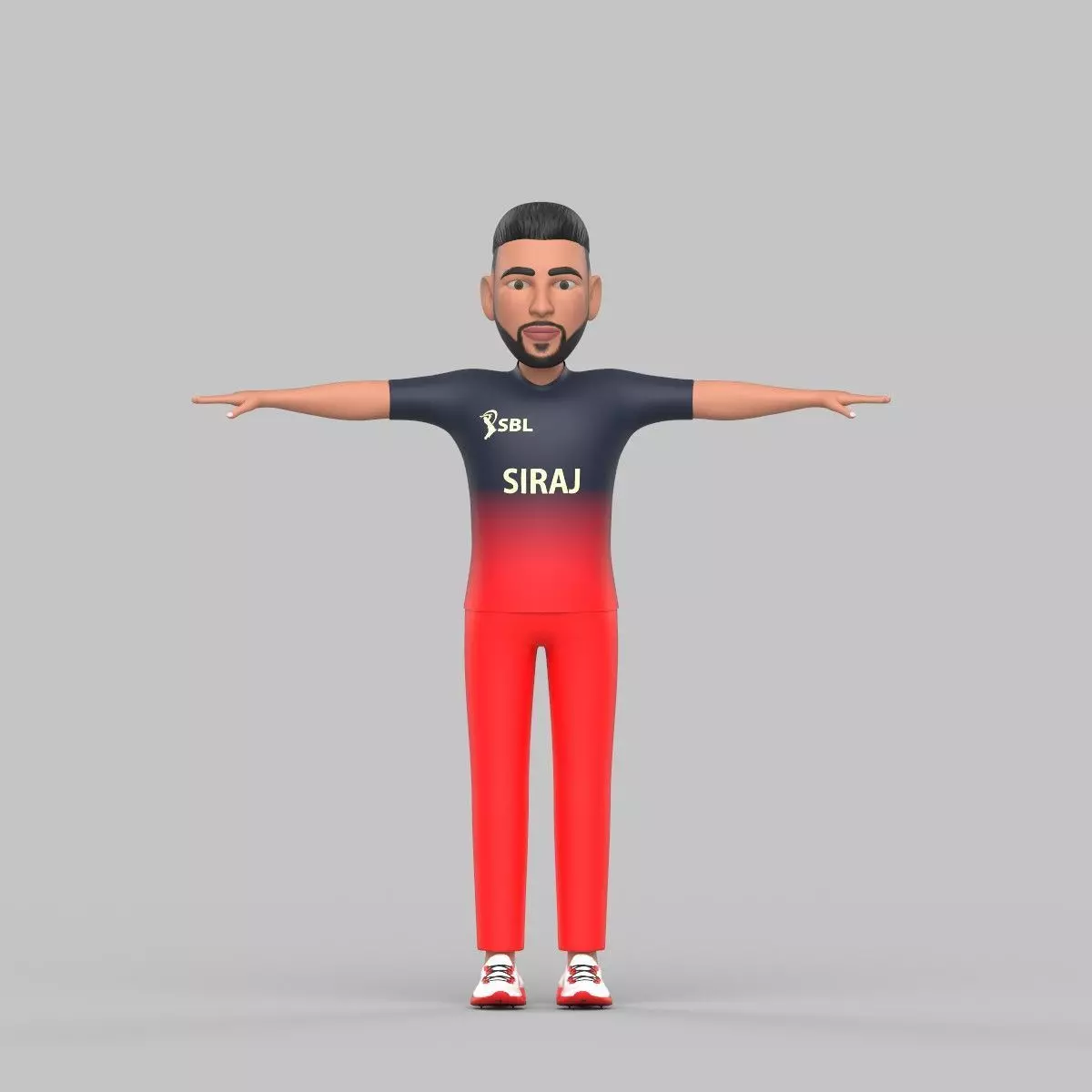 A 3D model of Mohammed SirajDetails:Modeled with MayaModel unwrappedPainted with substance Painter + Photoshop
