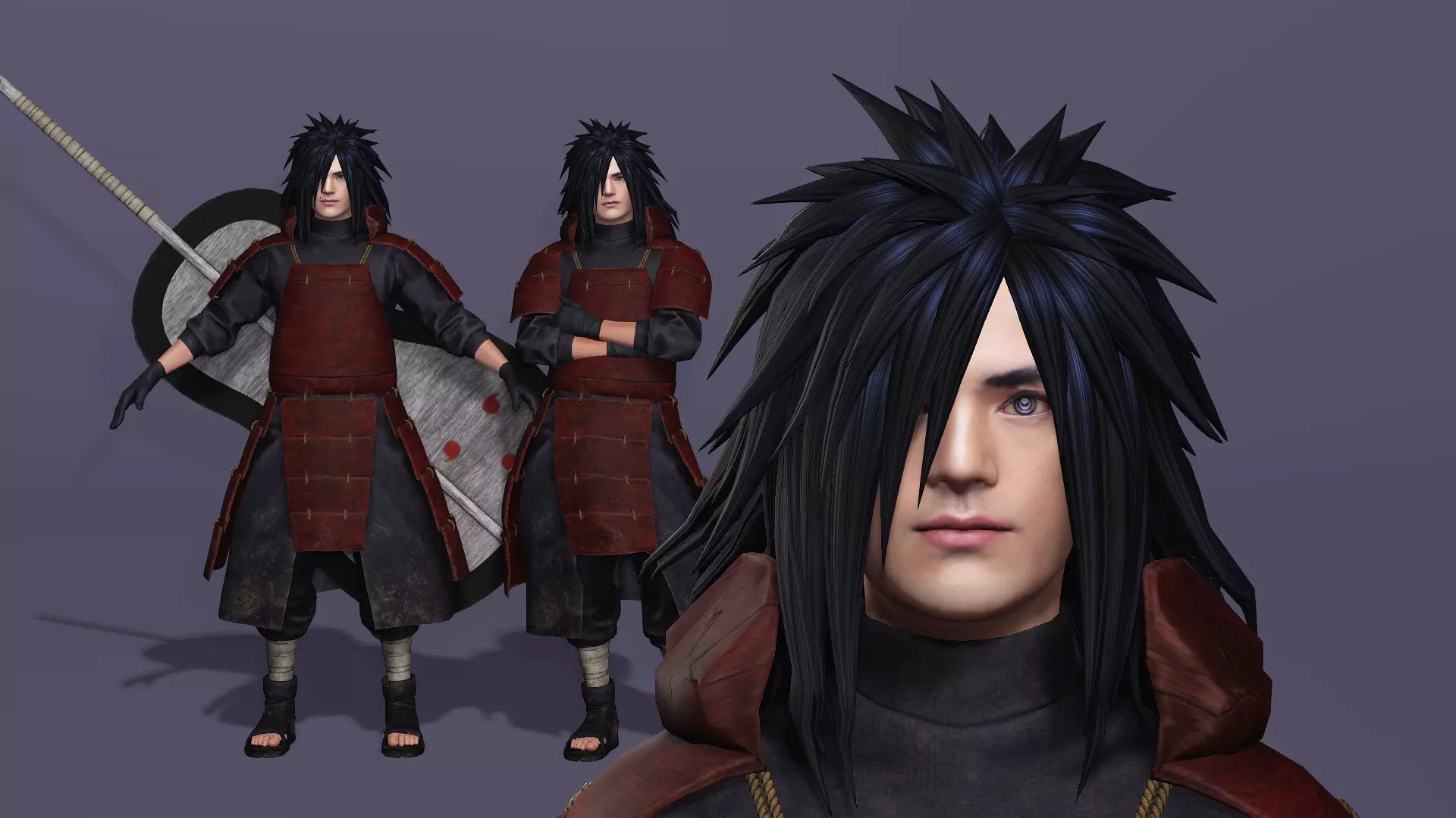 This is a high-quality, realistic 3D model inspired by the iconic Naruto character Uchiha Madara, reimagined with the charisma of Takeshi Kaneshiro.