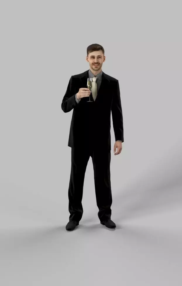 Posture Elegant Business Man Standing With A Glass Of Wine Low-poly 3D model