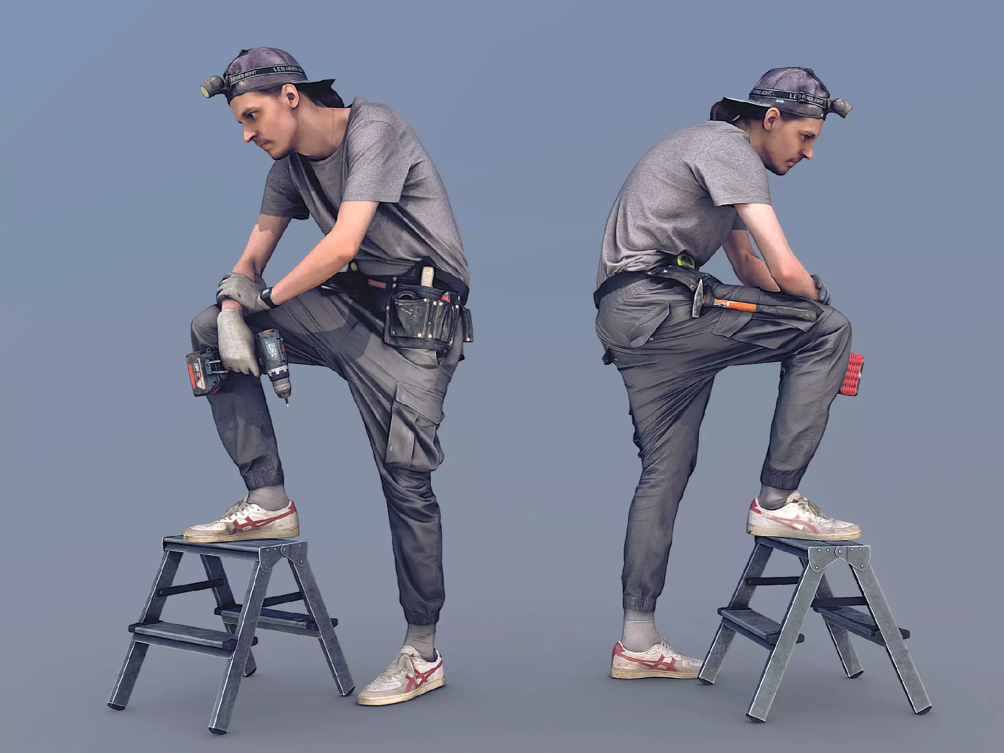 Photorealistic Construction Worker Character 3d model ready for Virtual Reality (VR), Augmented Reality (AR), games and other real-time apps. Suitable for the architectural visualization and another graphical projects. 50 000 polygons per model.