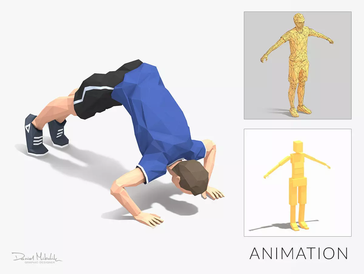 The model includes animations (movement or actions) that can be played in supported software or engines.