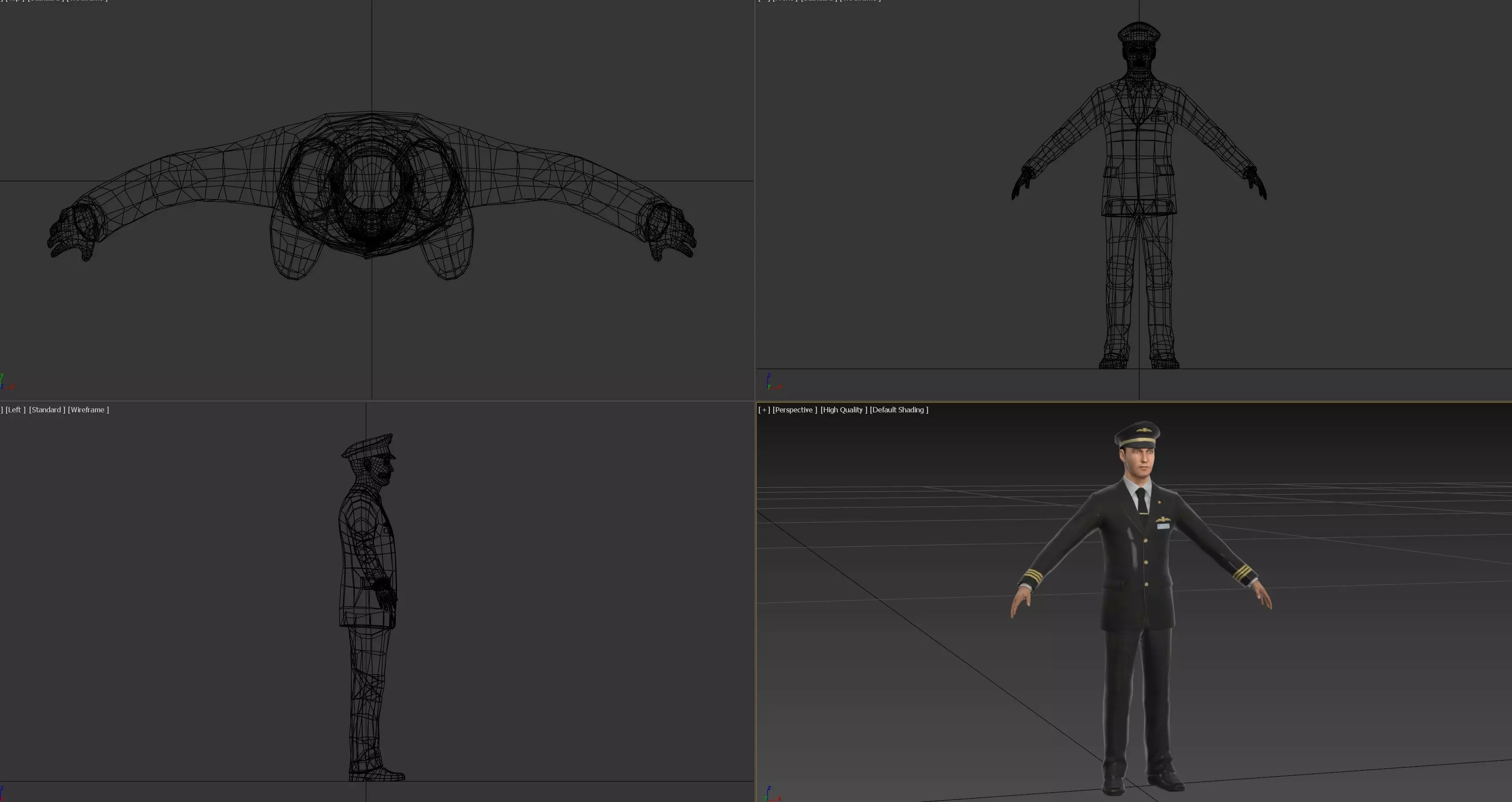 • Animated Pilot Character has a Biped Skeleton with Facial Rig