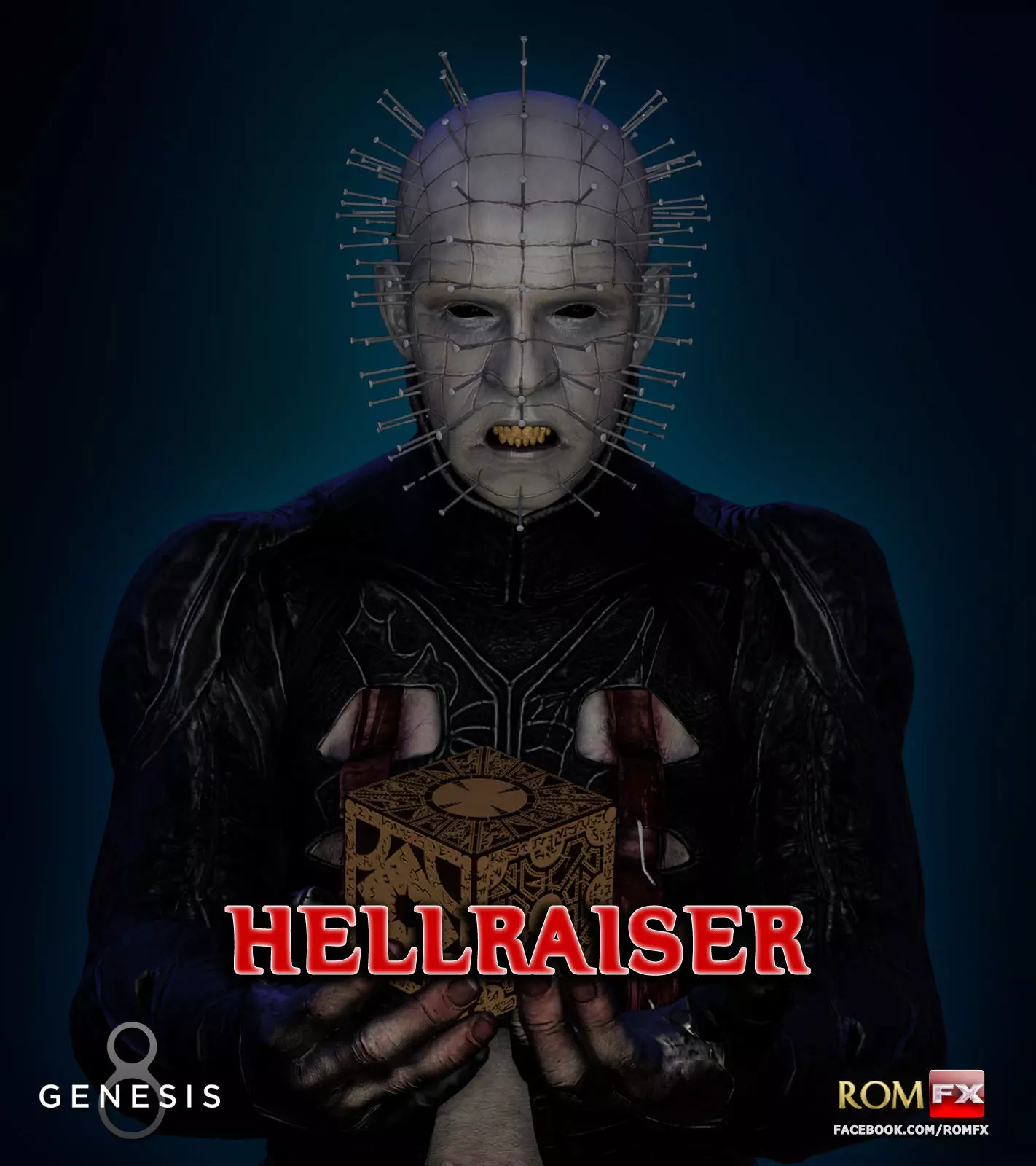 From the classic horror film series HELLRAISER, Pinhead is one of the leaders of the Cenobites, formerly humans, but who have been turned into demons that belong to a very particular group in Hell. They vary greatly in appearance, owing to the various mutilations and modifications that have taken place in their bodies. These beings enter Earth through a puzzle box in order to harvest and torture human souls.