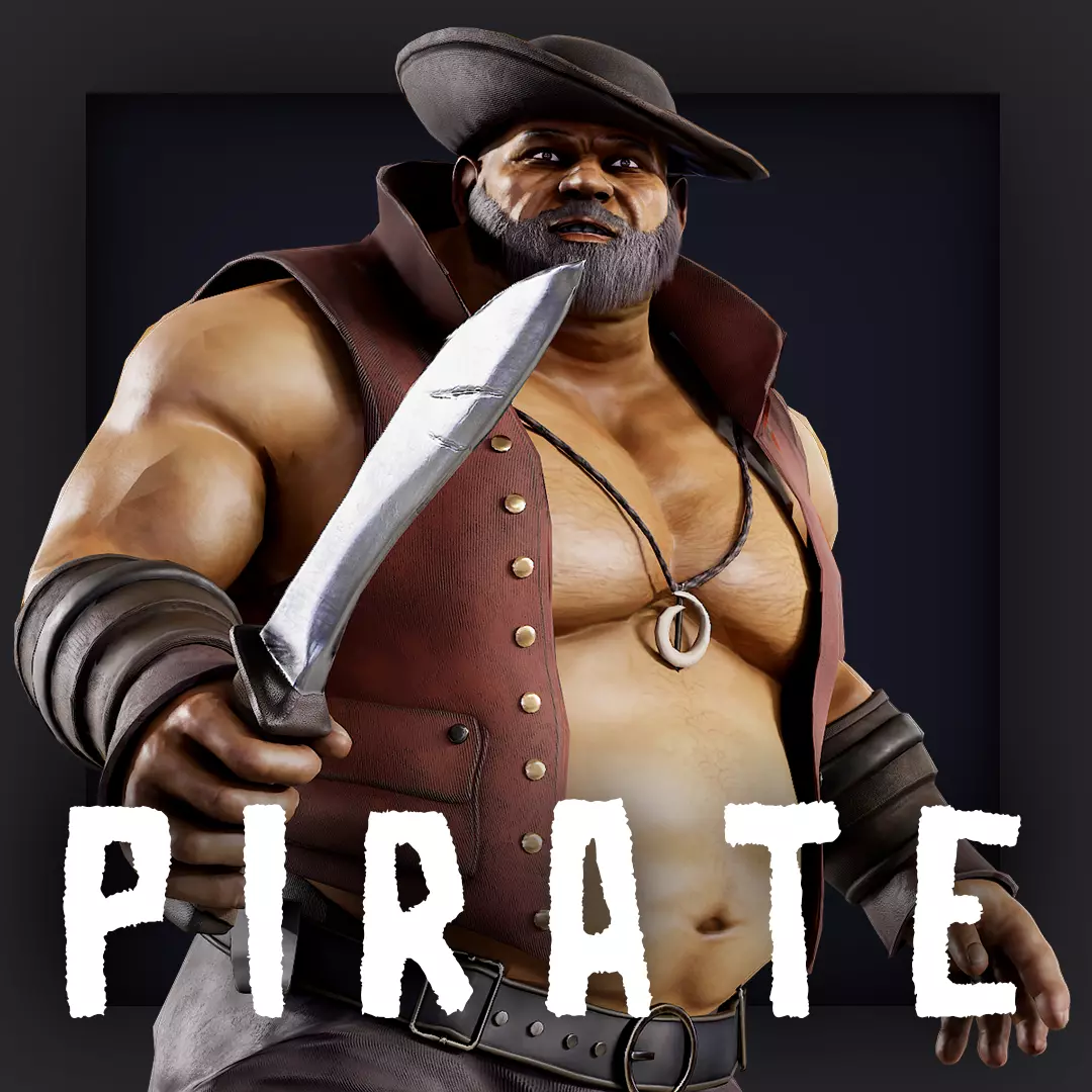 Pirate chef A pose Low_poly character redy for game for Unreal engine and UnityEpic RIGG 5 + Humanoid rigg