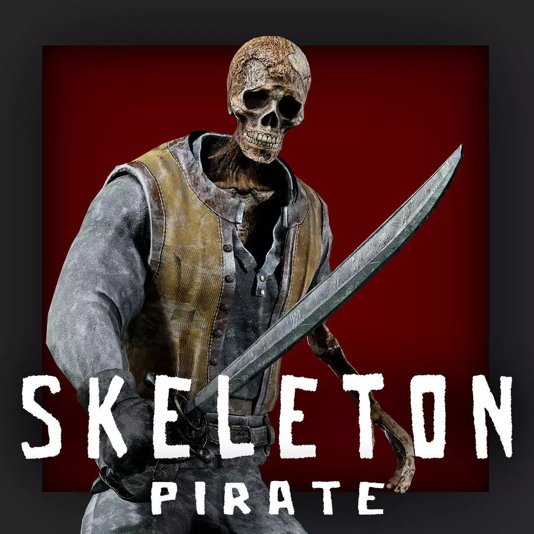 PIRATE SKELETON 6_A A pose Low_poly HIGH QUALITY character redy for game for Unreal engine and UnityEpic RIGG 5 + Humanoid rigg