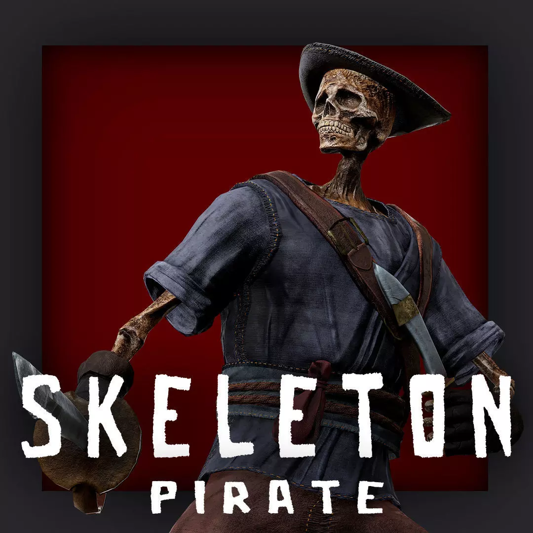 PIRATE SKELETON 9_A A pose Low_poly HIGH QUALITY character redy for game for Unreal engine and UnityEpic RIGG 5 + Humanoid rigg