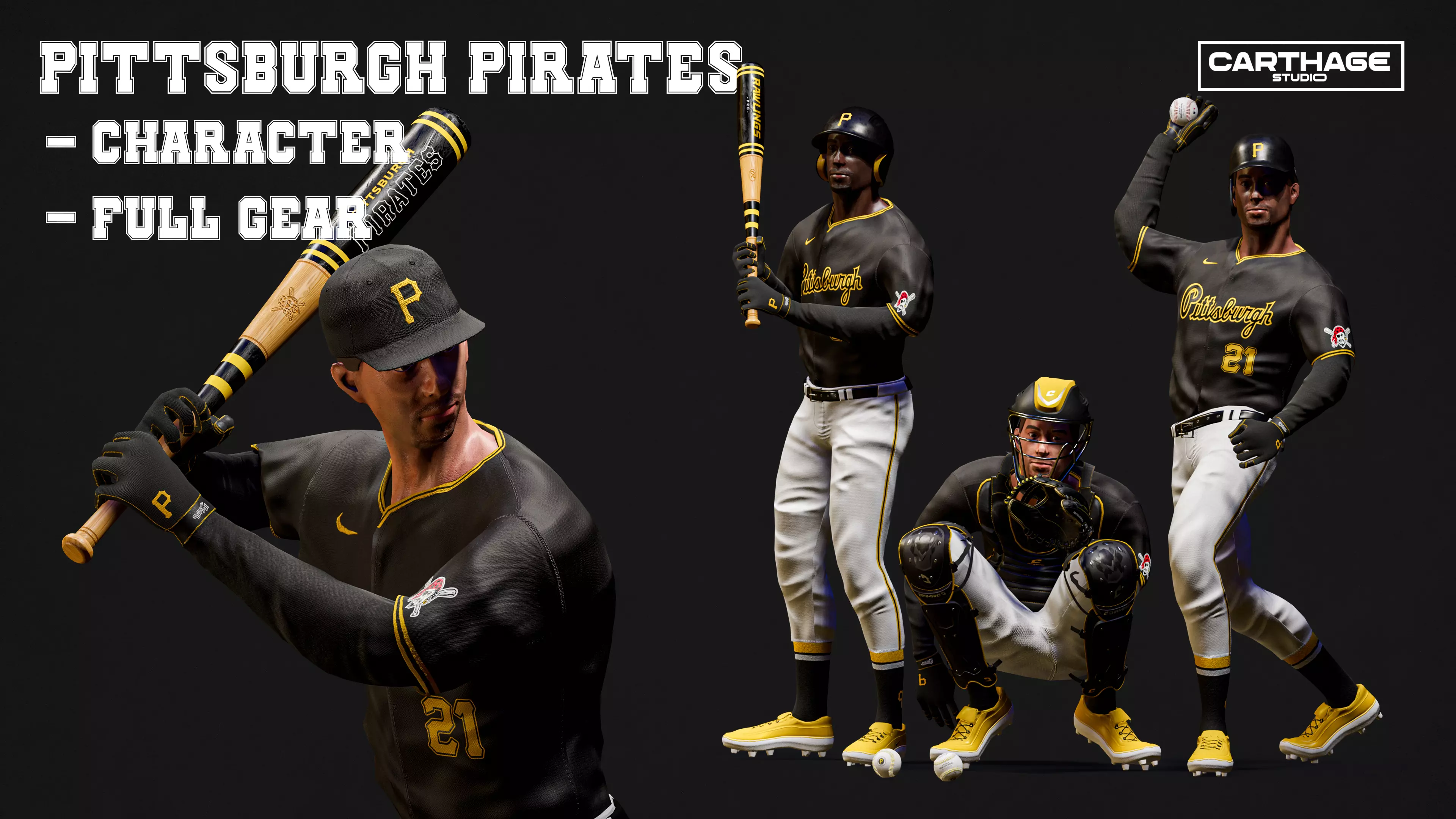Pittsburgh Pirates Character And Essential Baseball Equipment Low-poly 3D model