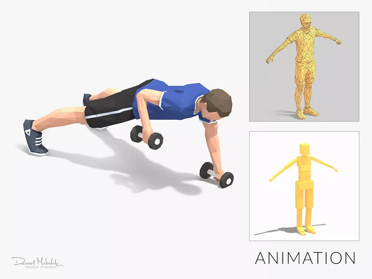 The model includes animations (movement or actions) that can be played in supported software or engines.