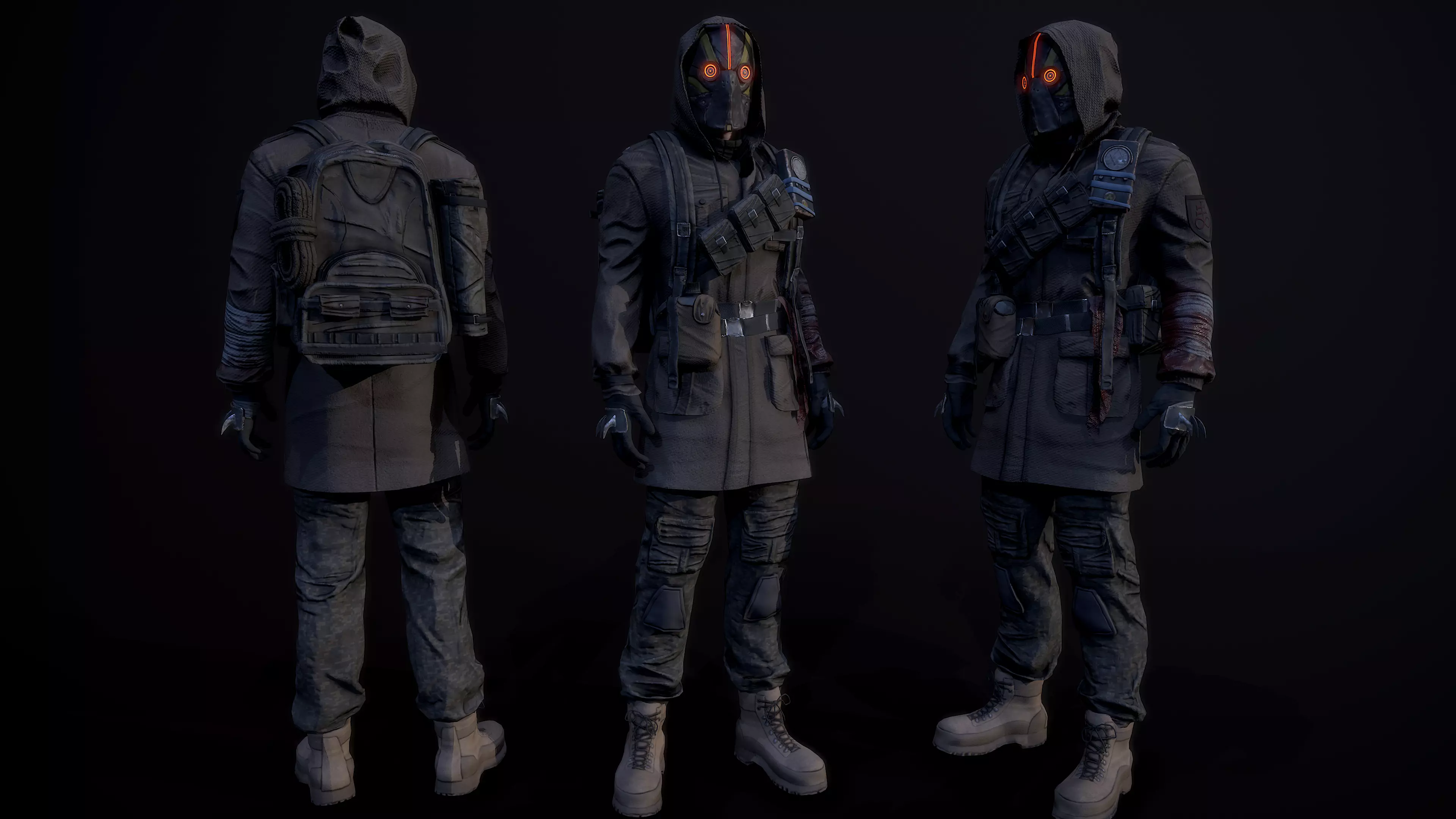 post apocalyptic guy 3d model, pbr textures, low-poly