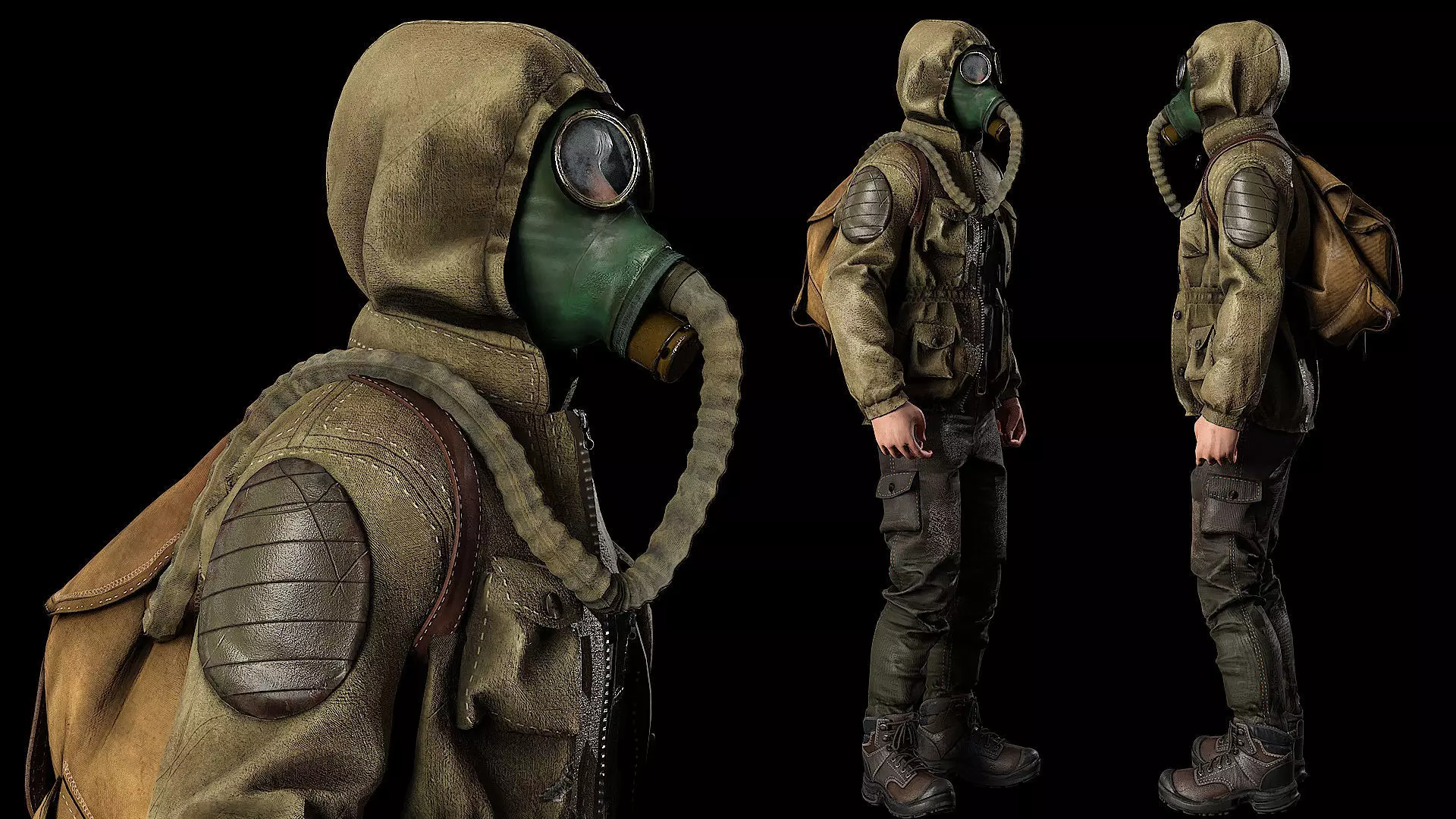 Gasmask and body kit, Jaket, Pants and boots, Human.