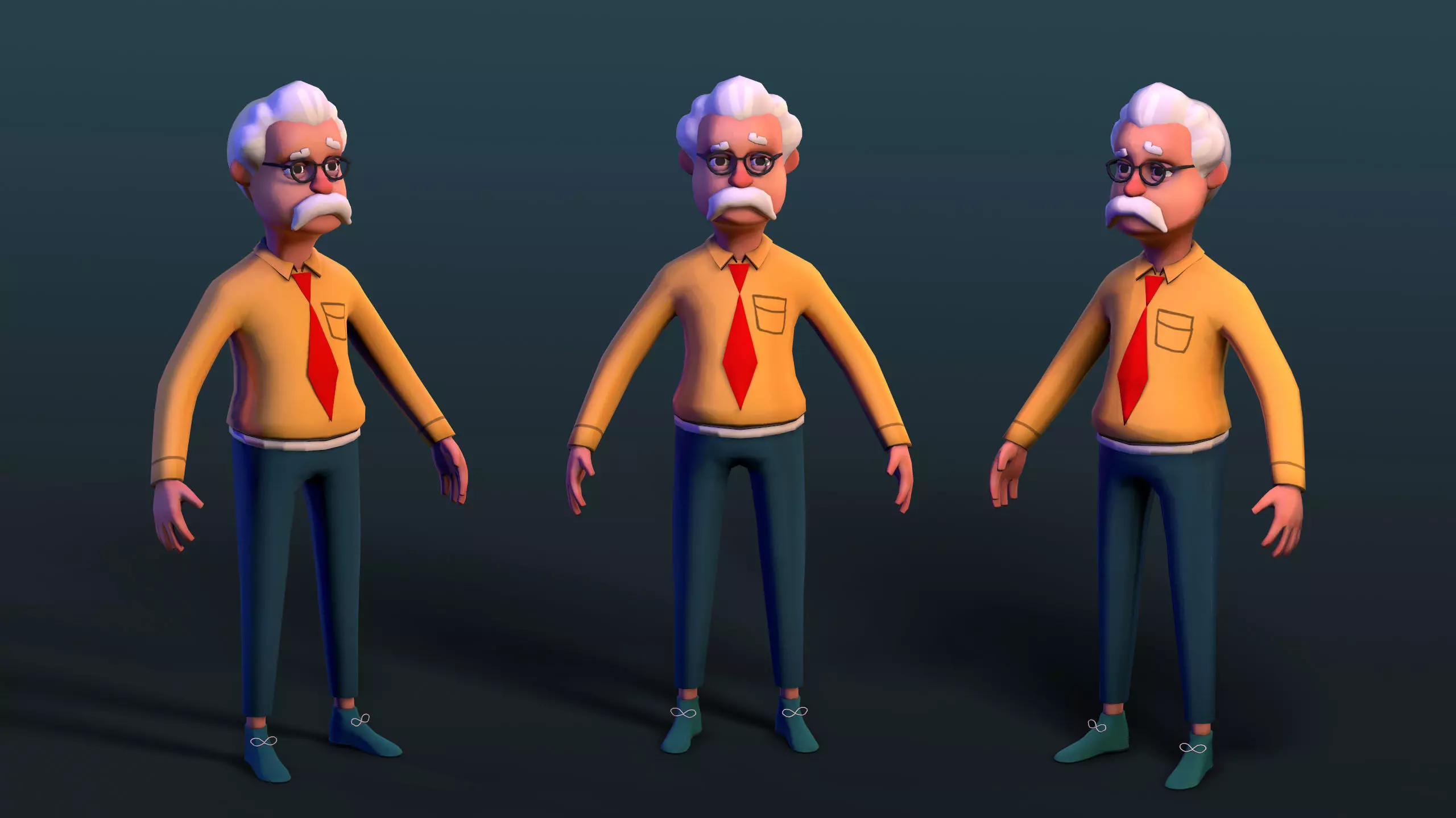 cartoon simple lowpoly game character Professor Low-poly 3D model