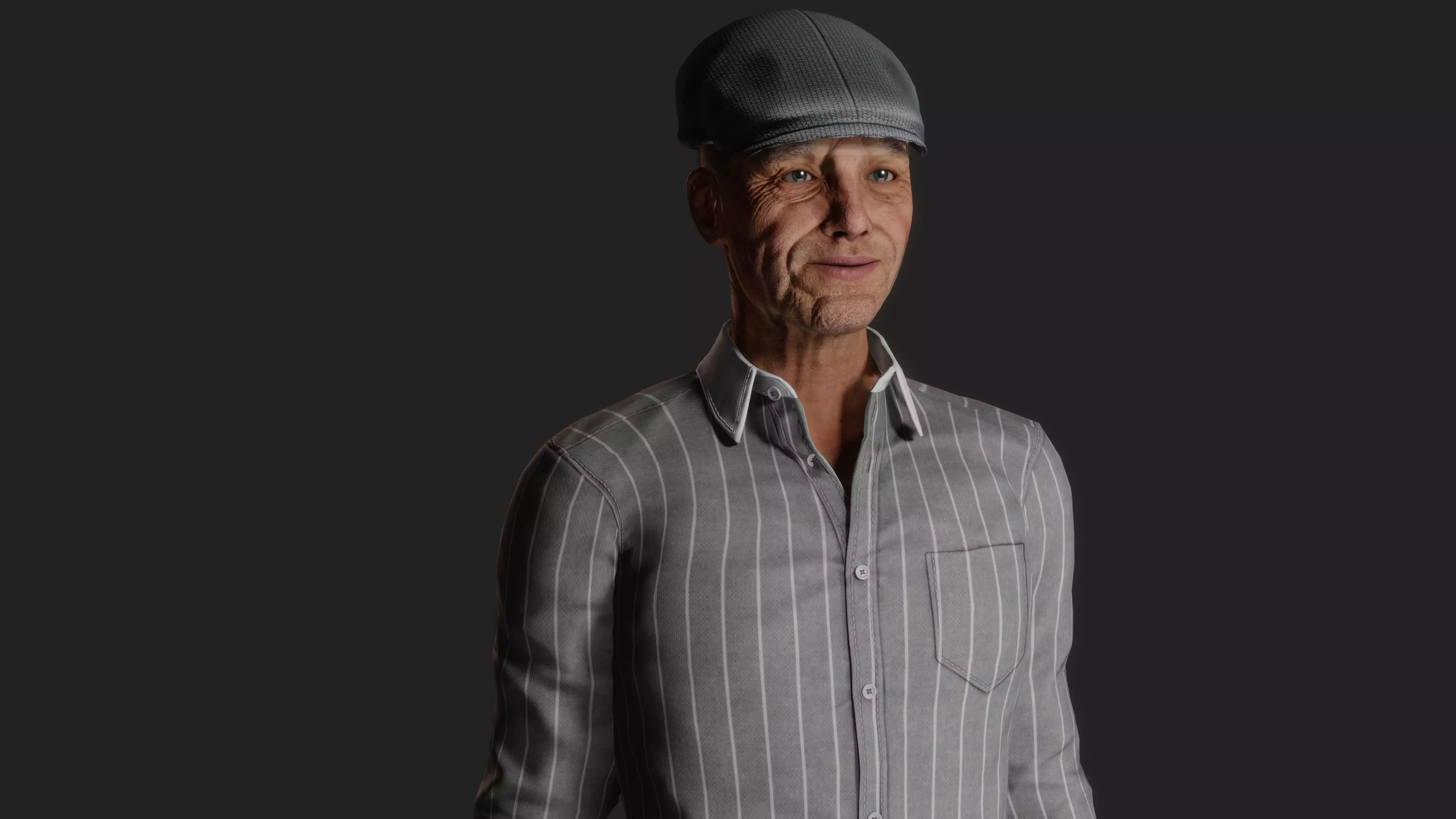 Step into the world of timeless charm with our meticulously crafted 3D model featuring an old, yet vibrant grandfather exuding warmth and style. This realistic portrayal captures the essence of a gracefully aged man, sporting a sweet smile that reflects a lifetime of experiences. Dressed in a fashionable ensemble, the vintage cap adds a touch of nostalgia, perfectly complementing the classic gray shirt and jeans adorned with a detailed belt.