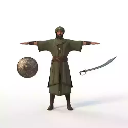 Highly-detailed 3D model of an ancient Arab warrior, designed for action games and commercial projects.