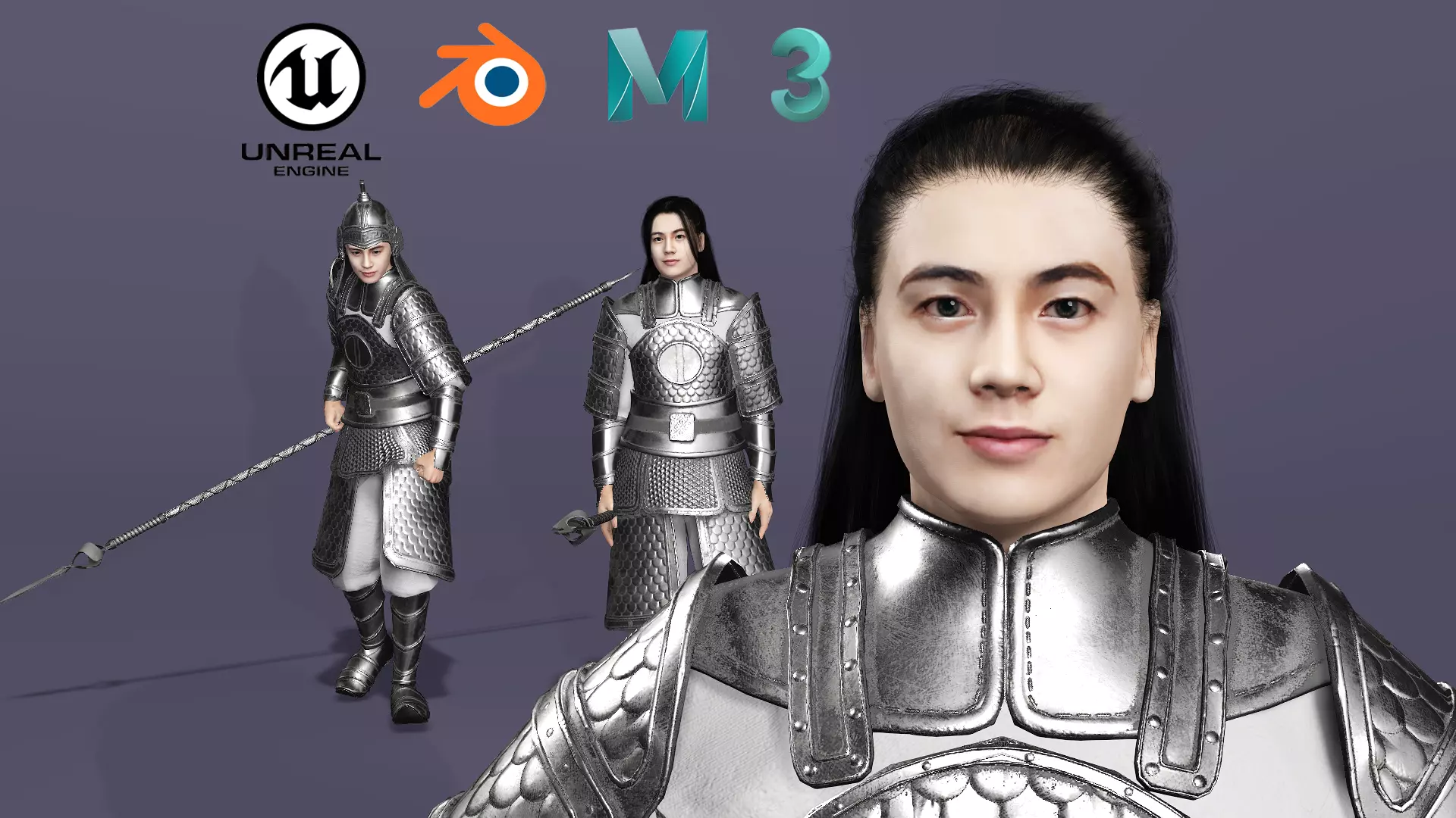It features authentic Song Dynasty armor and weapons, capturing the heroic spirit of the young general.The model is fully rigged (body and facial rig), compatible with Unreal Engine’s standard skeleton, and ready for direct use in games, films, or interactive projects.