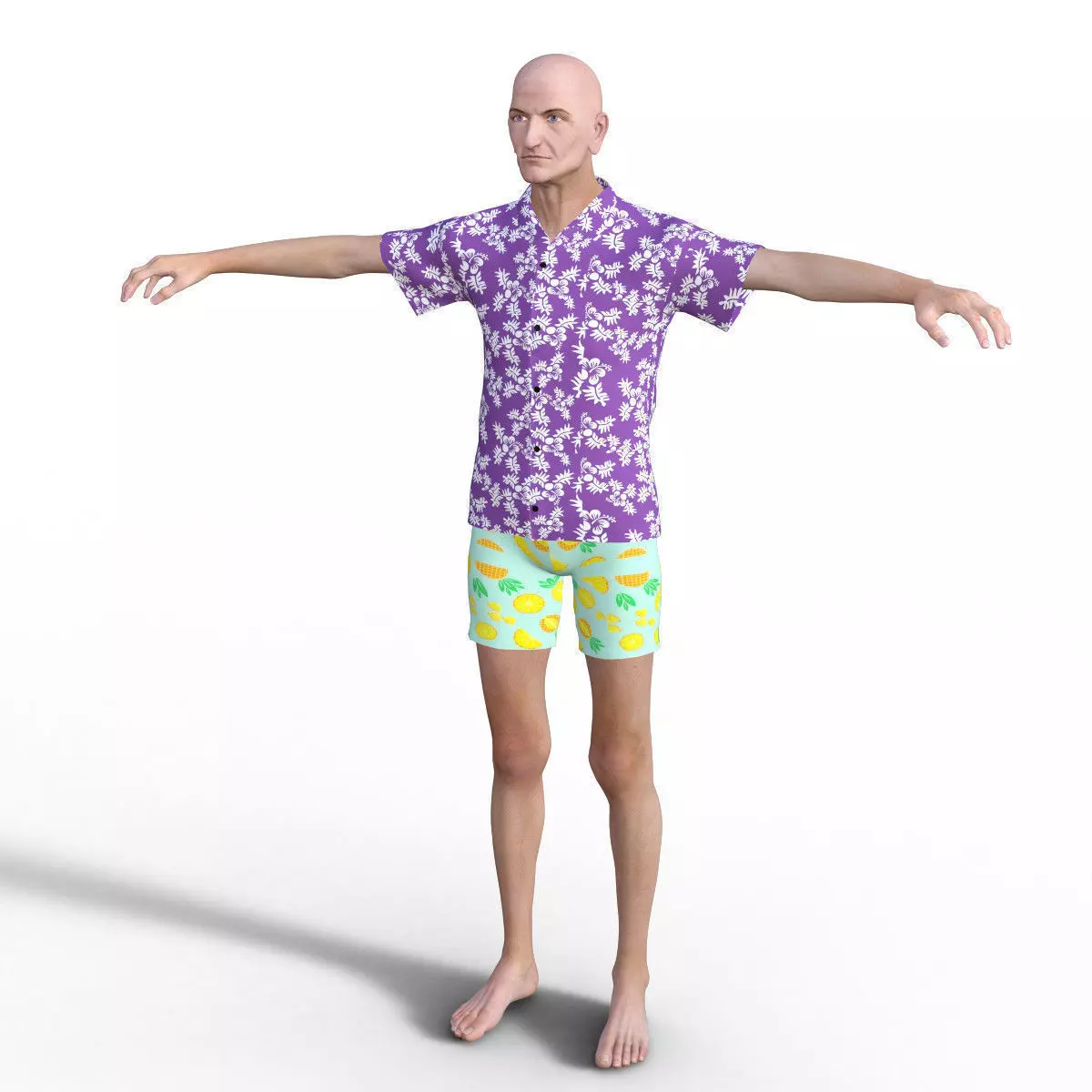 Realistic Hawaiian Old Man - Rigged Low-poly 3D model