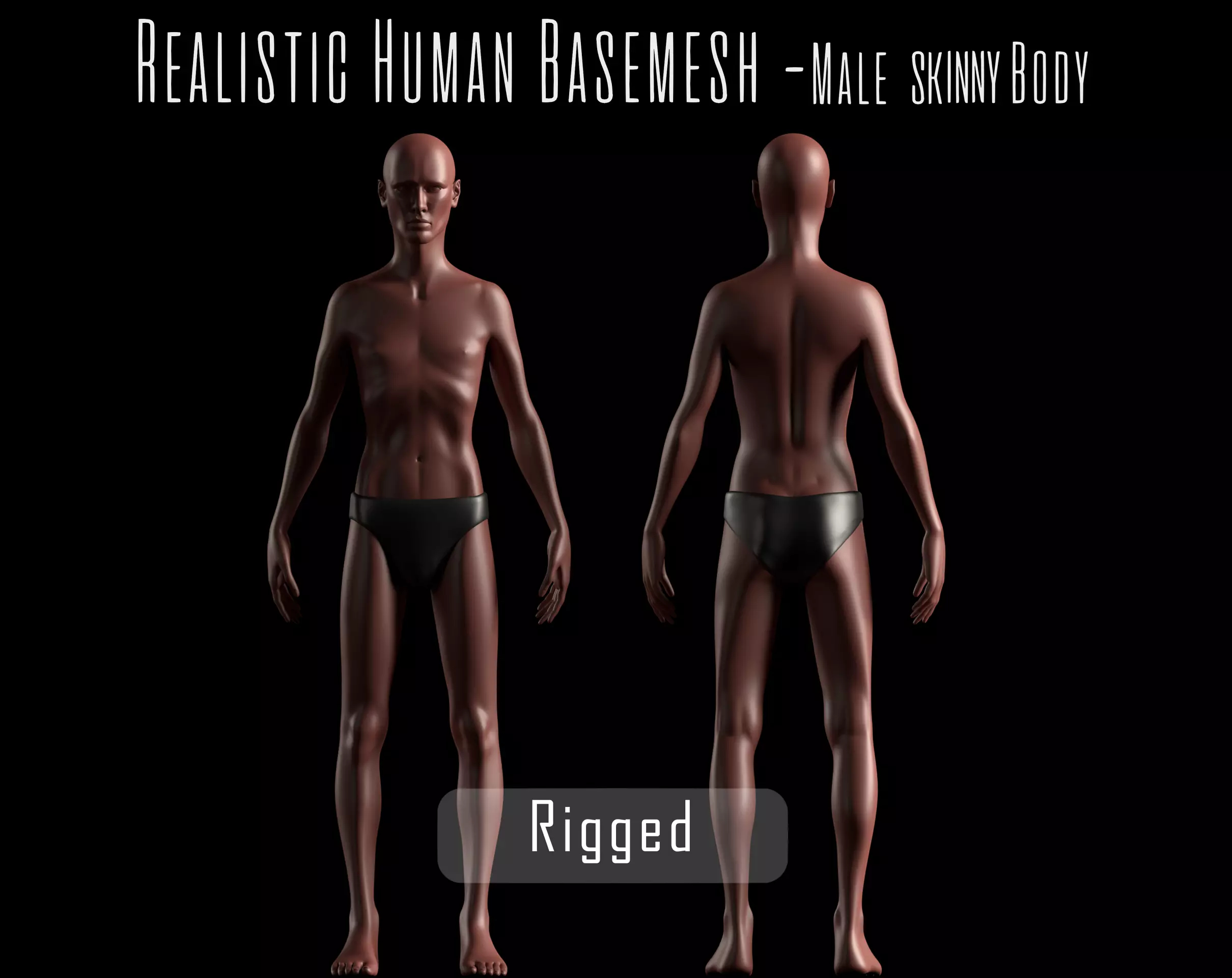 This is my take on a male basemesh (hopefully) realistic body, this time on a skinny way in an attempt to give more inclusiveness. Model is skinned and it's provided with a simple but functional rig.