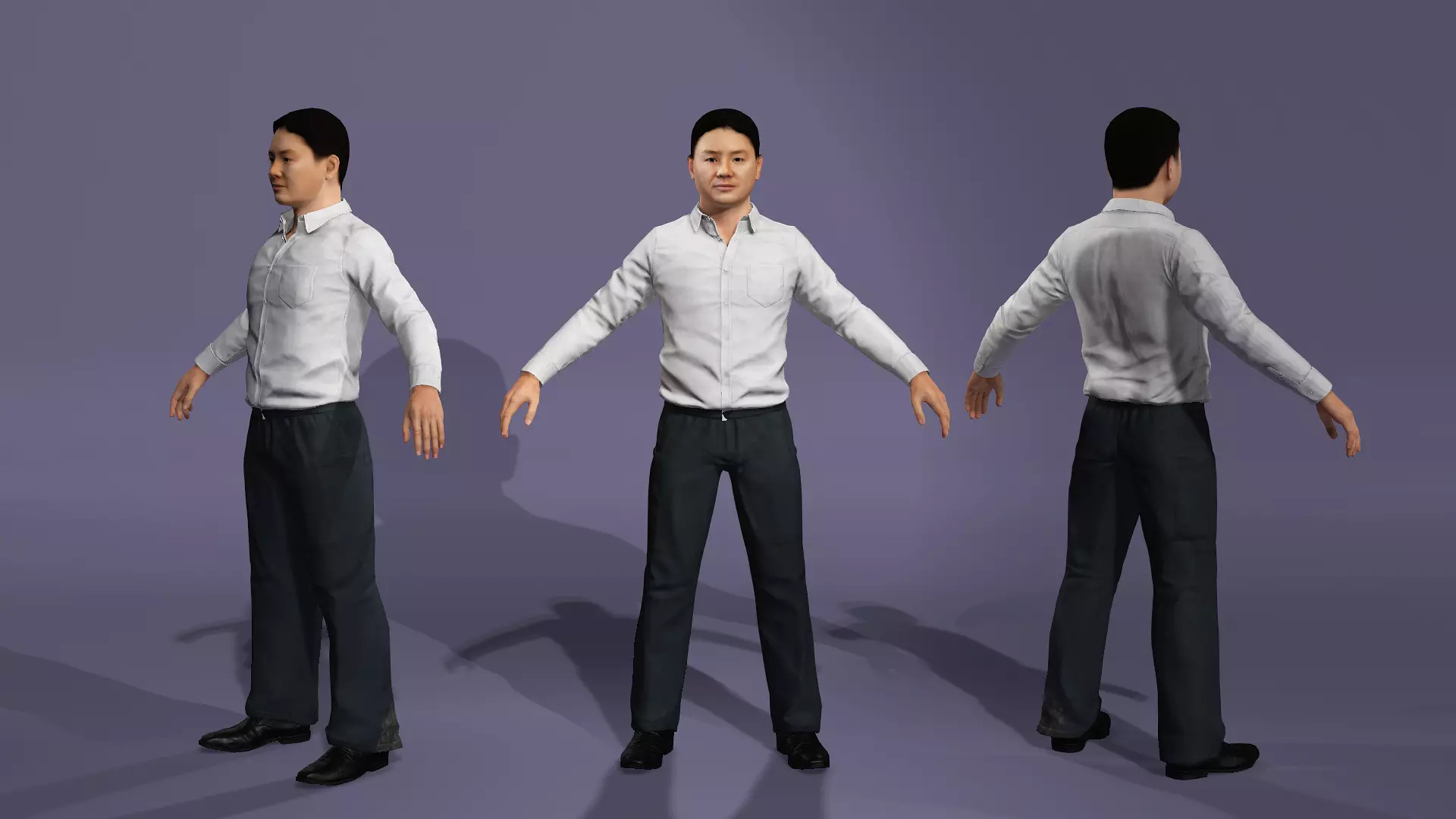 The model conveys a professional, trustworthy, and authoritative presence, making it ideal for corporate videos, business presentations, training, film production, and virtual human projects.