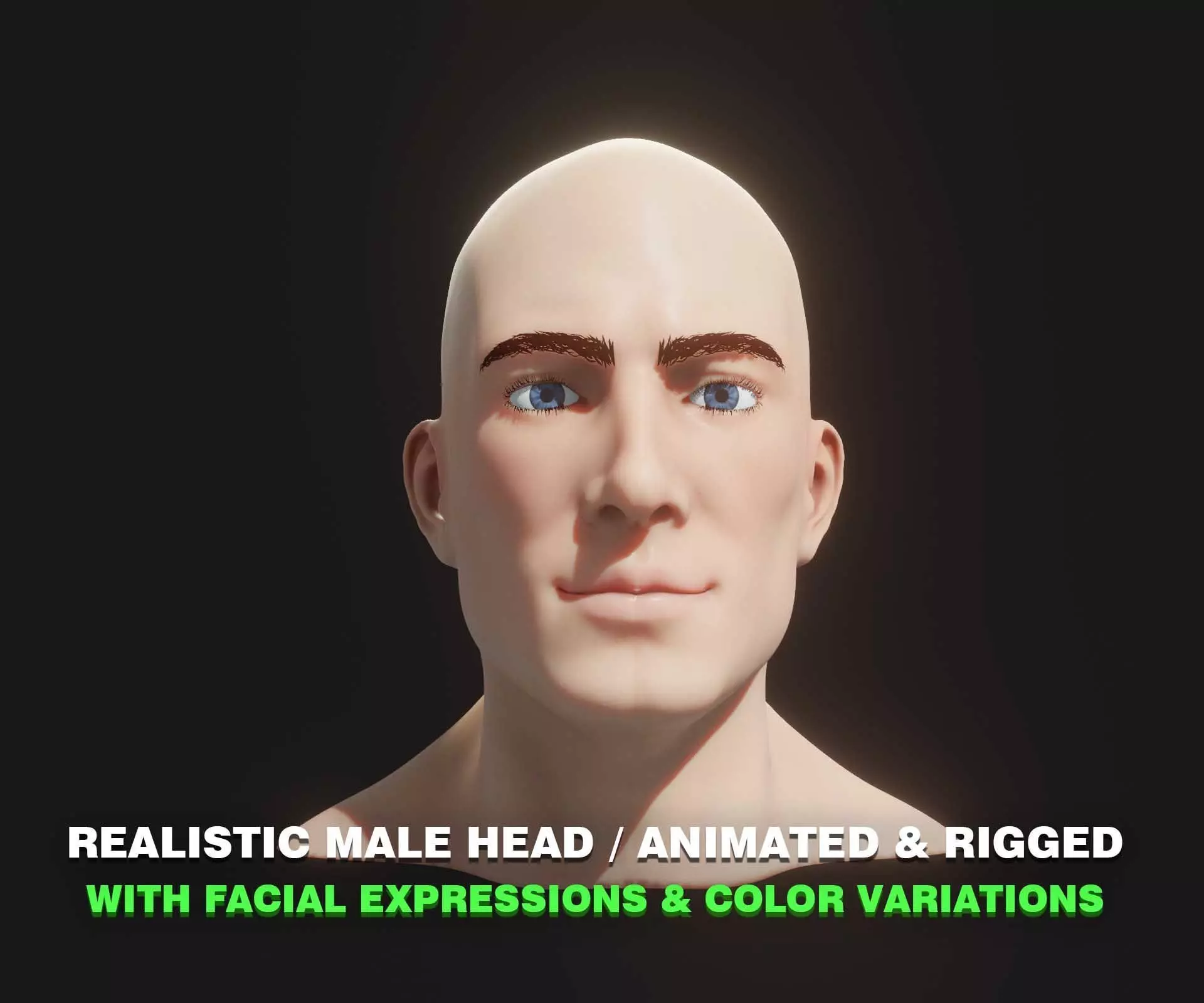 Realistic Male Head 3D Model Animated with Facial Expressions is completely ready to be used in your games, animations, films, designs etc.