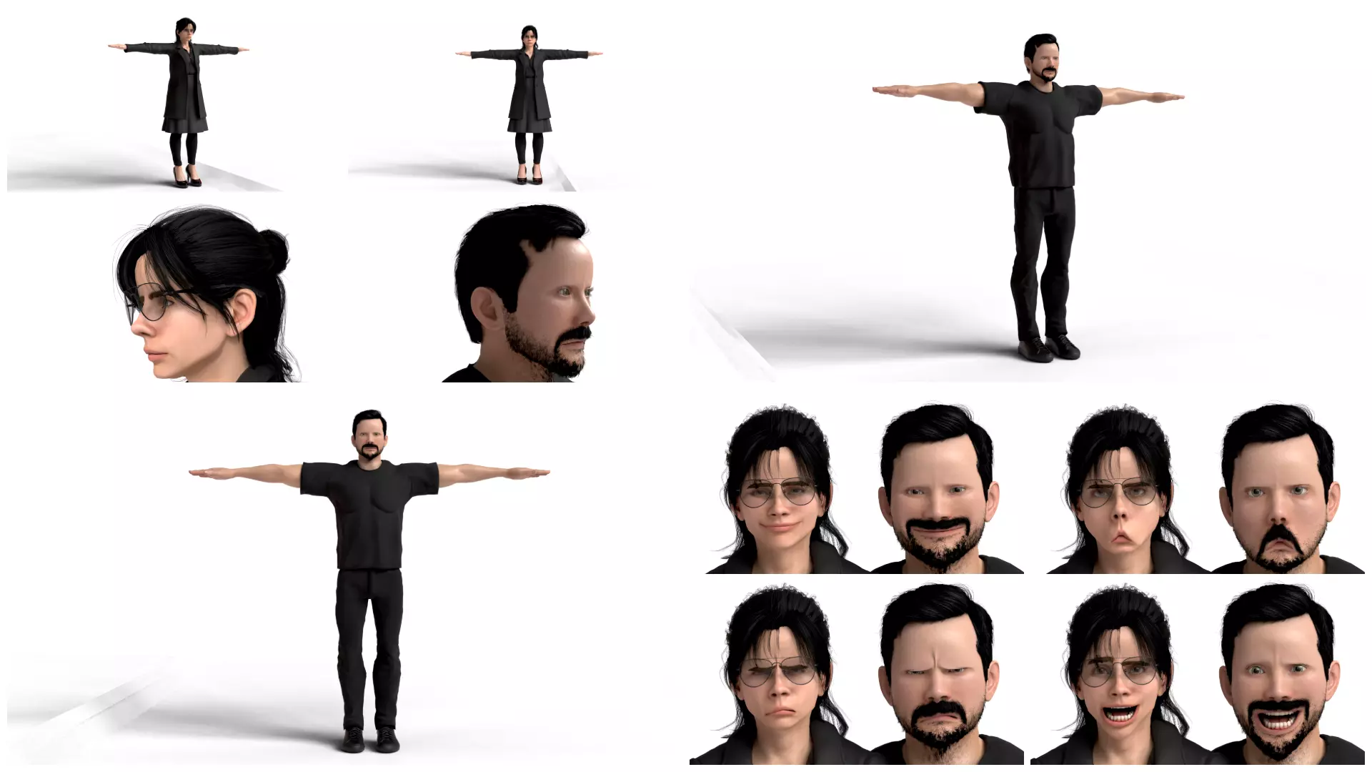 Built with clean quad-based topology, the models ensure smooth deformations for both body and facial animation while maintaining efficient geometry flow.