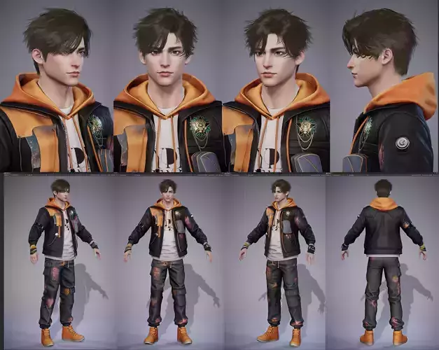Materials: 8Total Materials (face,Body, Eye,Eyebrows,Eyelashes ,Hair,jacket , Trousers)