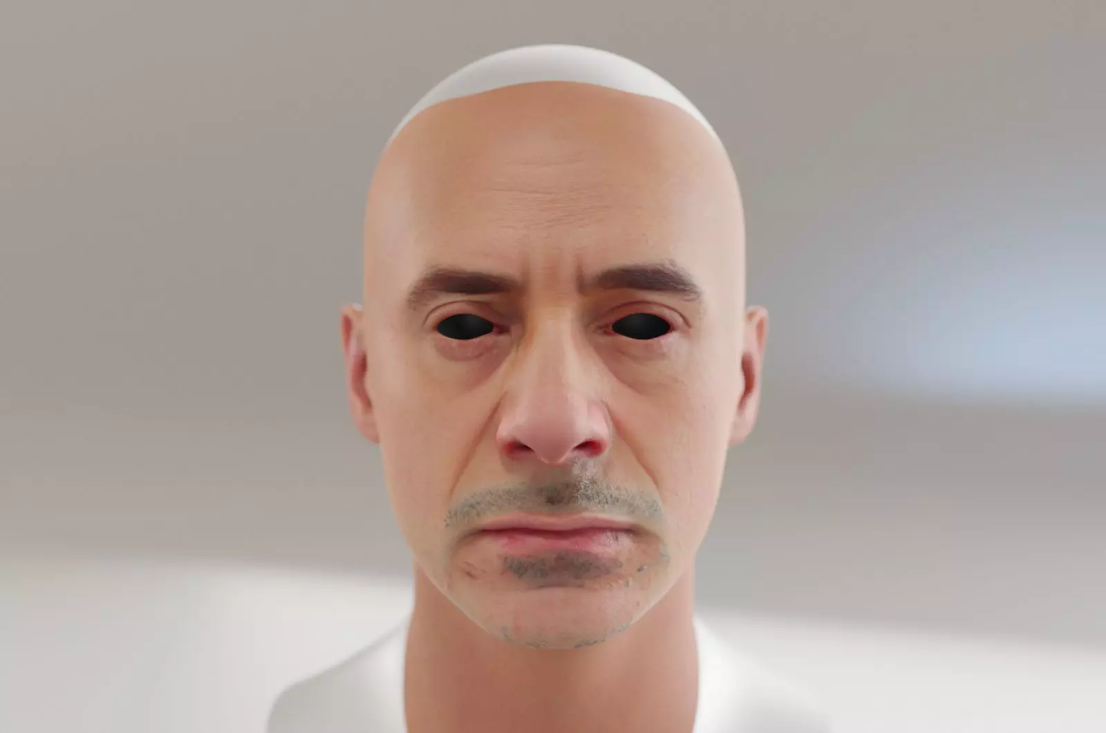 Creating with text on the website: face, Robert Downey Jr., oval-shaped, brown eyes, curved nose, thin upper lip.