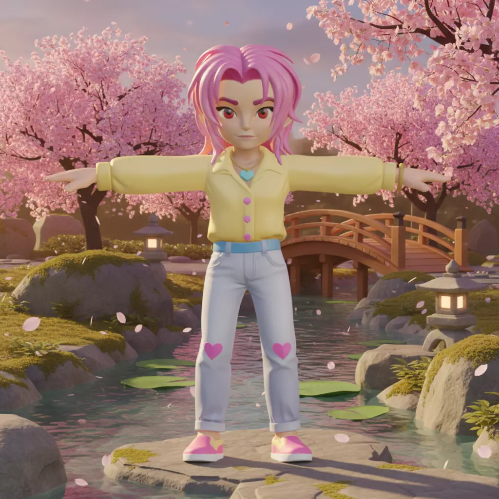 Romance Saja - Kpop Demon Hunter is retopologized and fully ready for use in game engines.A charming member of the Kpop Demon Hunters team, Saja features a romantic soft boy aesthetic with signature heart motifs on his outfit and stylish pink hair. The model has textures. Hope it will be useful for you!