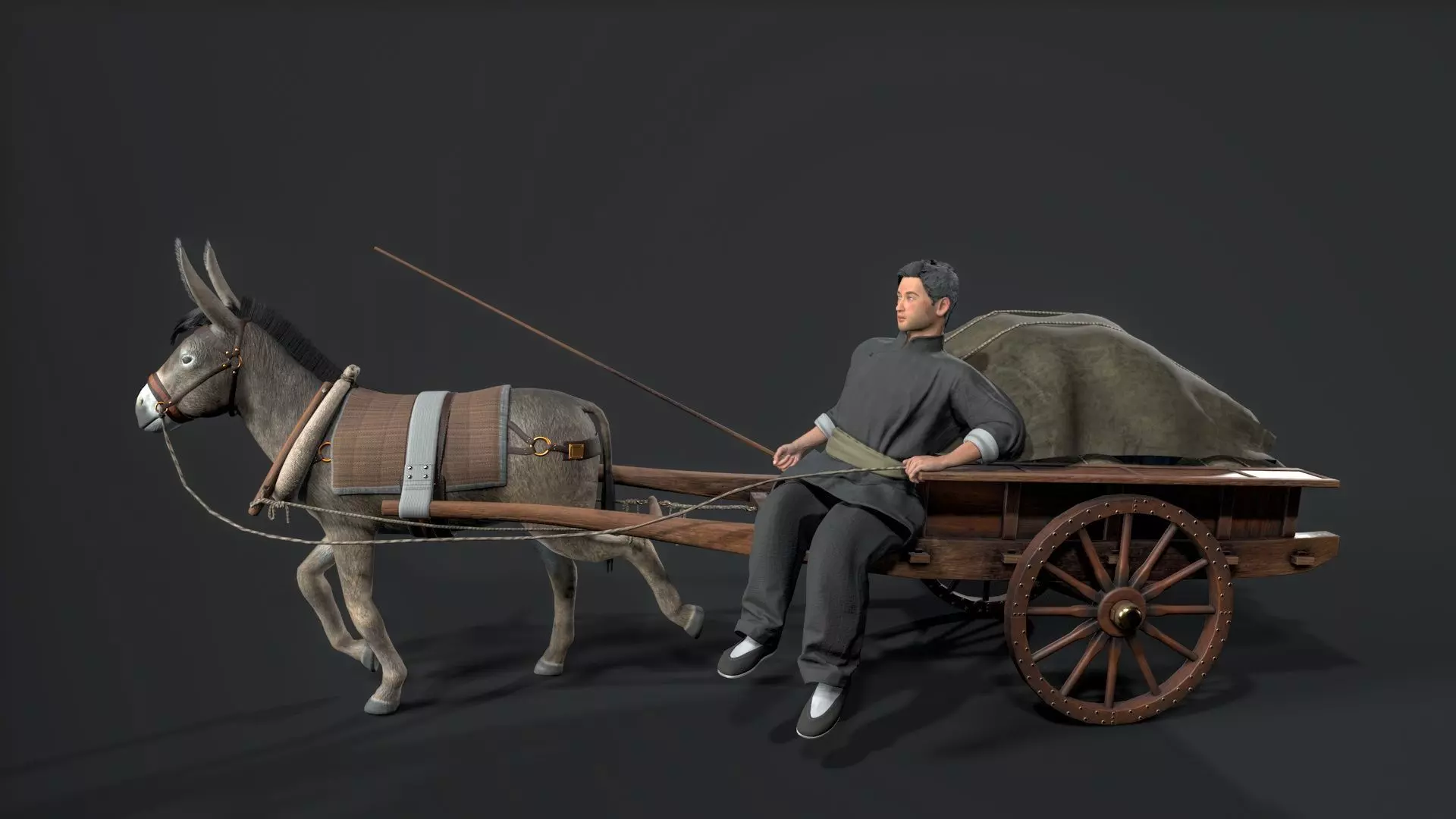 Rustic Donkey-Pulled Cart Low-poly 3D model