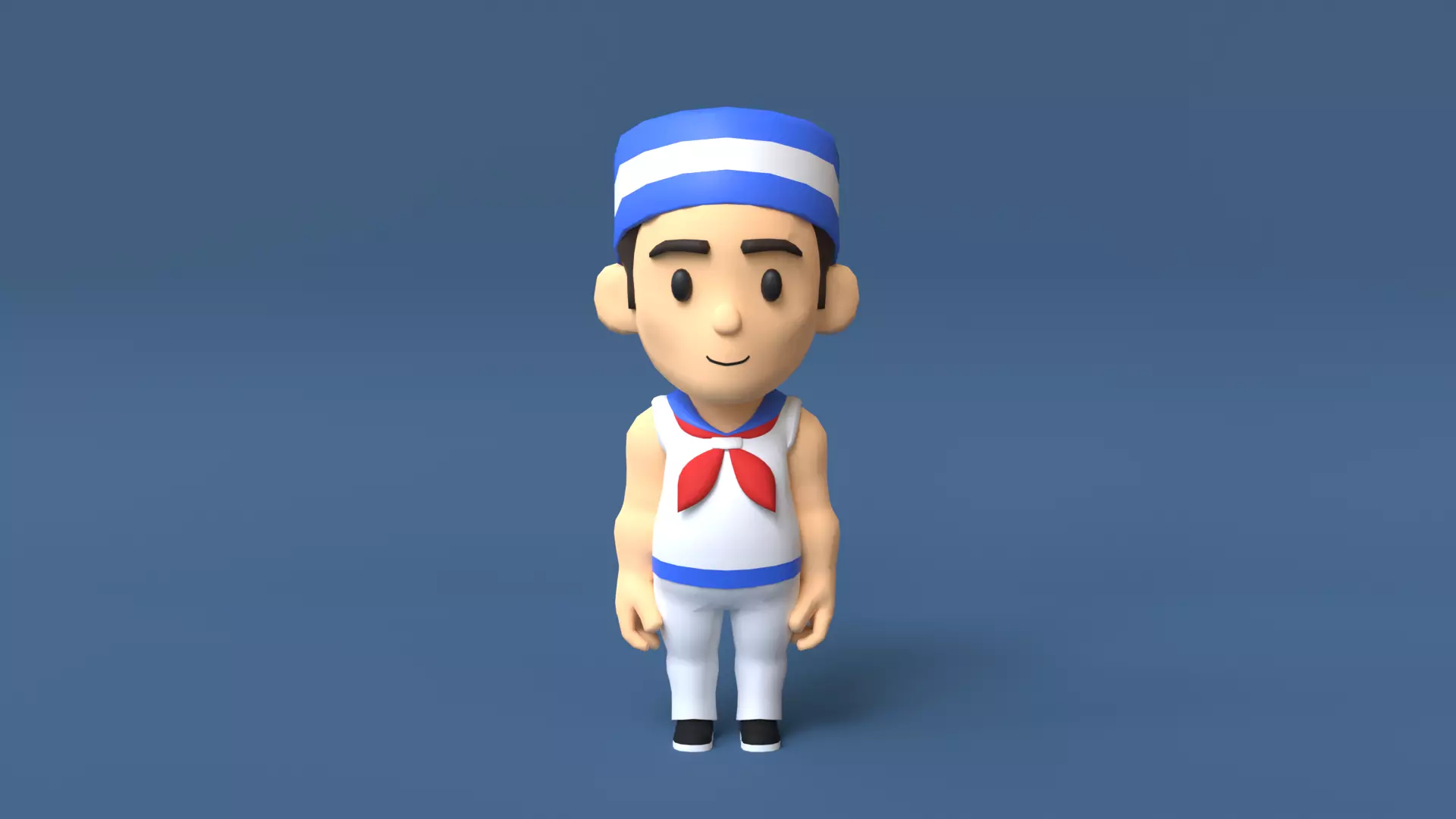 Sailor Low Poly cartoon character wearing hat Low-poly 3D model