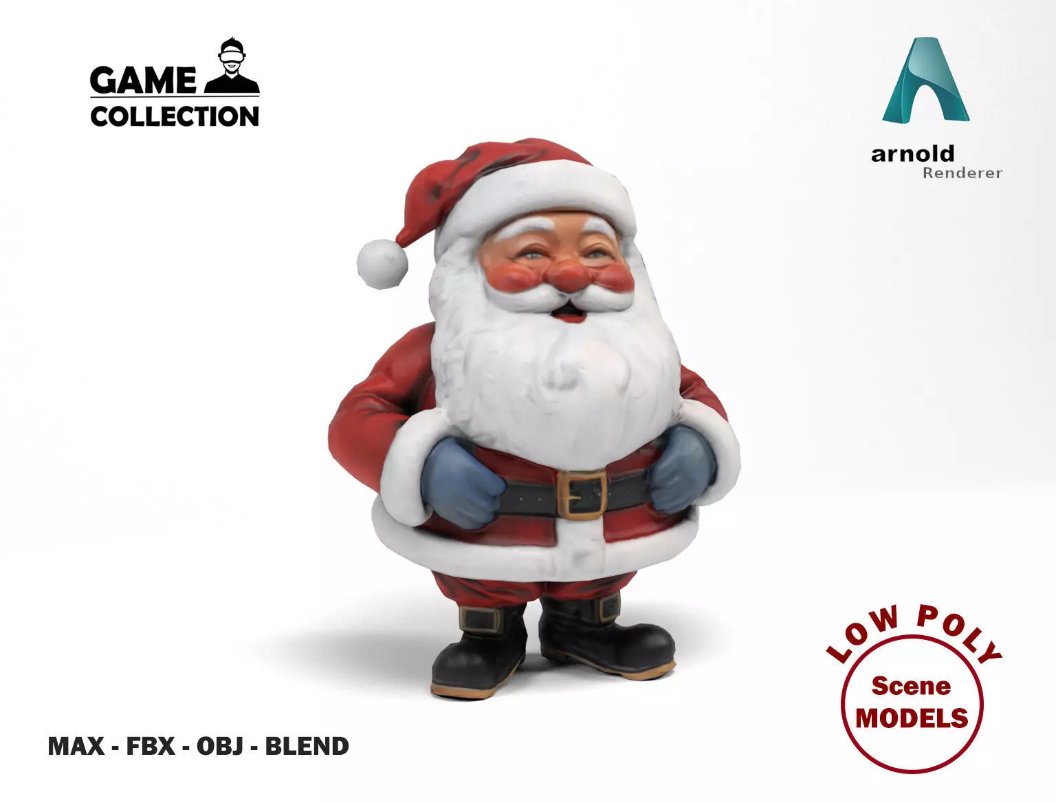 3D Model of Santa Claus. All the models are low poly, basic but realistic and are ideal for 3D scenes that require few polygons. They can be used for advertising visualitations and also for games or applications. It has been created in different 3D Studio Max versions and also in FBX, OBJ, and blend.