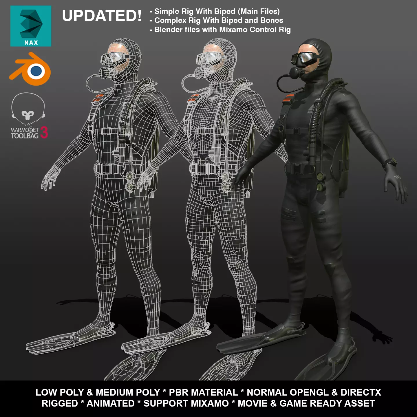 This is 3D Asset of SCUBA DIVER (Diving Suit) MALE - Updated on 08 August 2025