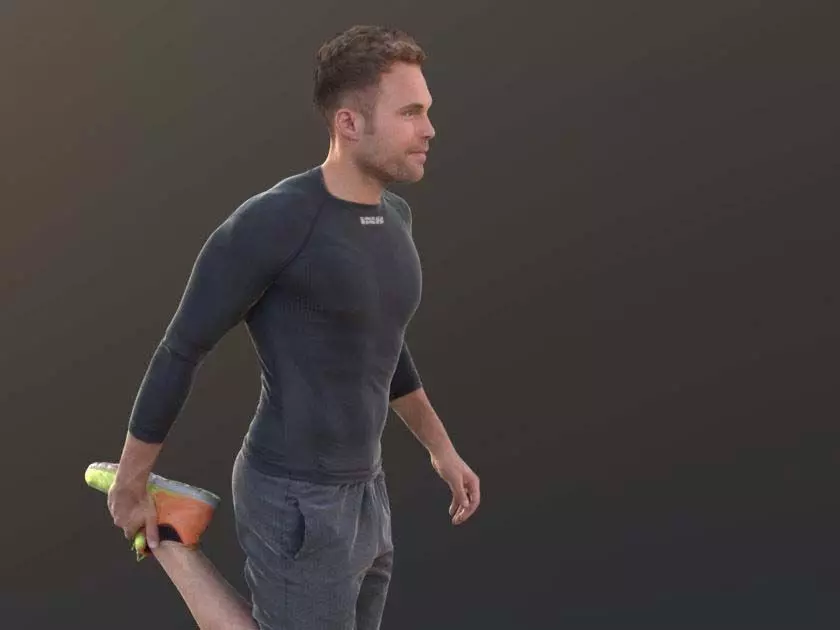 Simon gets ready for a marathon. Why not catch up with him and pick him up? He fits perfectly in any type of scene.3D Scanned People to enliven your perspectives just choose your model, drop it into your scene and render it!