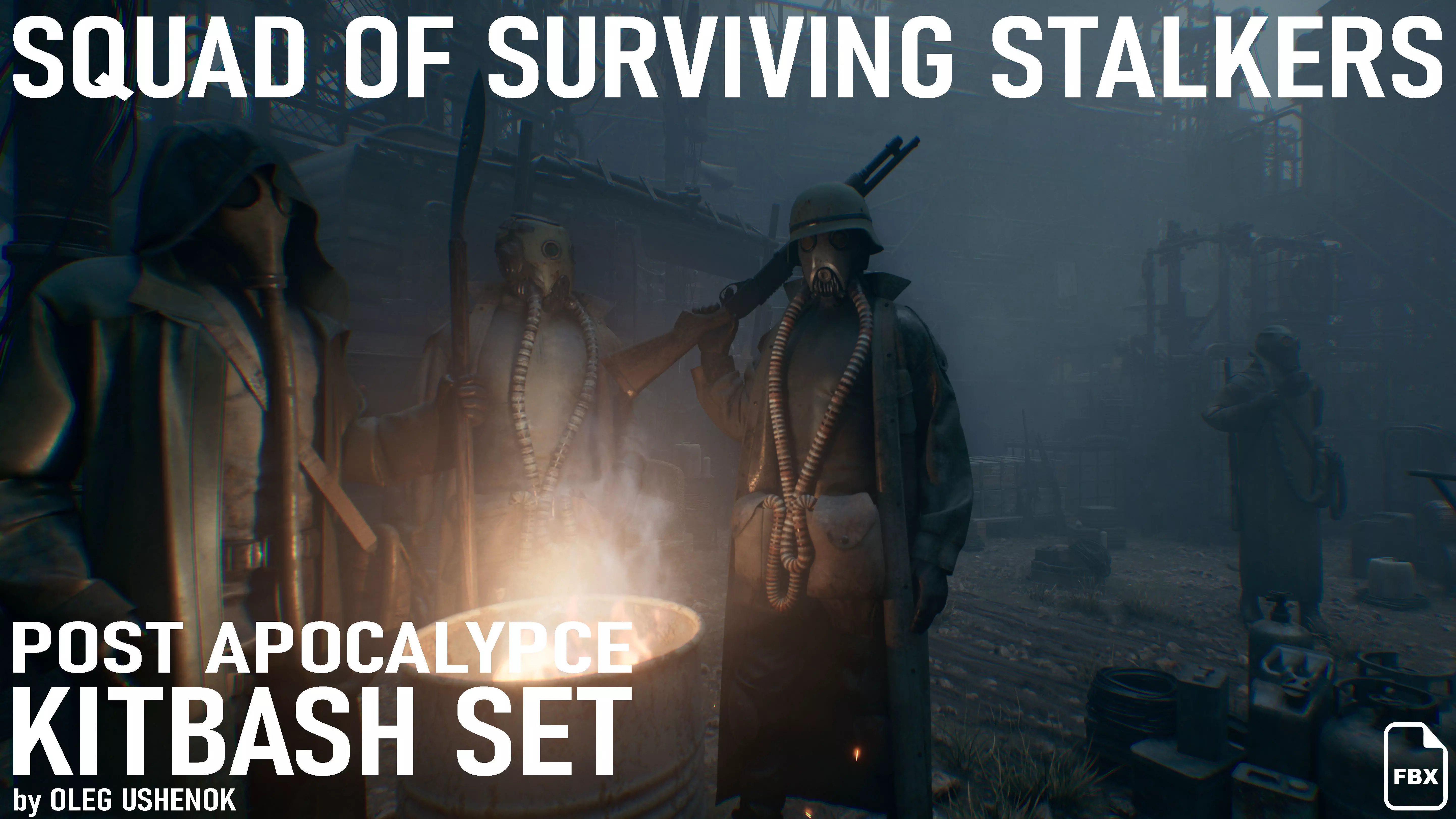 I created this stalker set as an addition to a larger post-apocalyptic environment set, since this squad fits perfectly and enhances the atmosphere of a world that was first destroyed and later rebuilt — a world where the struggle for survival and resources never stops for a single minute.