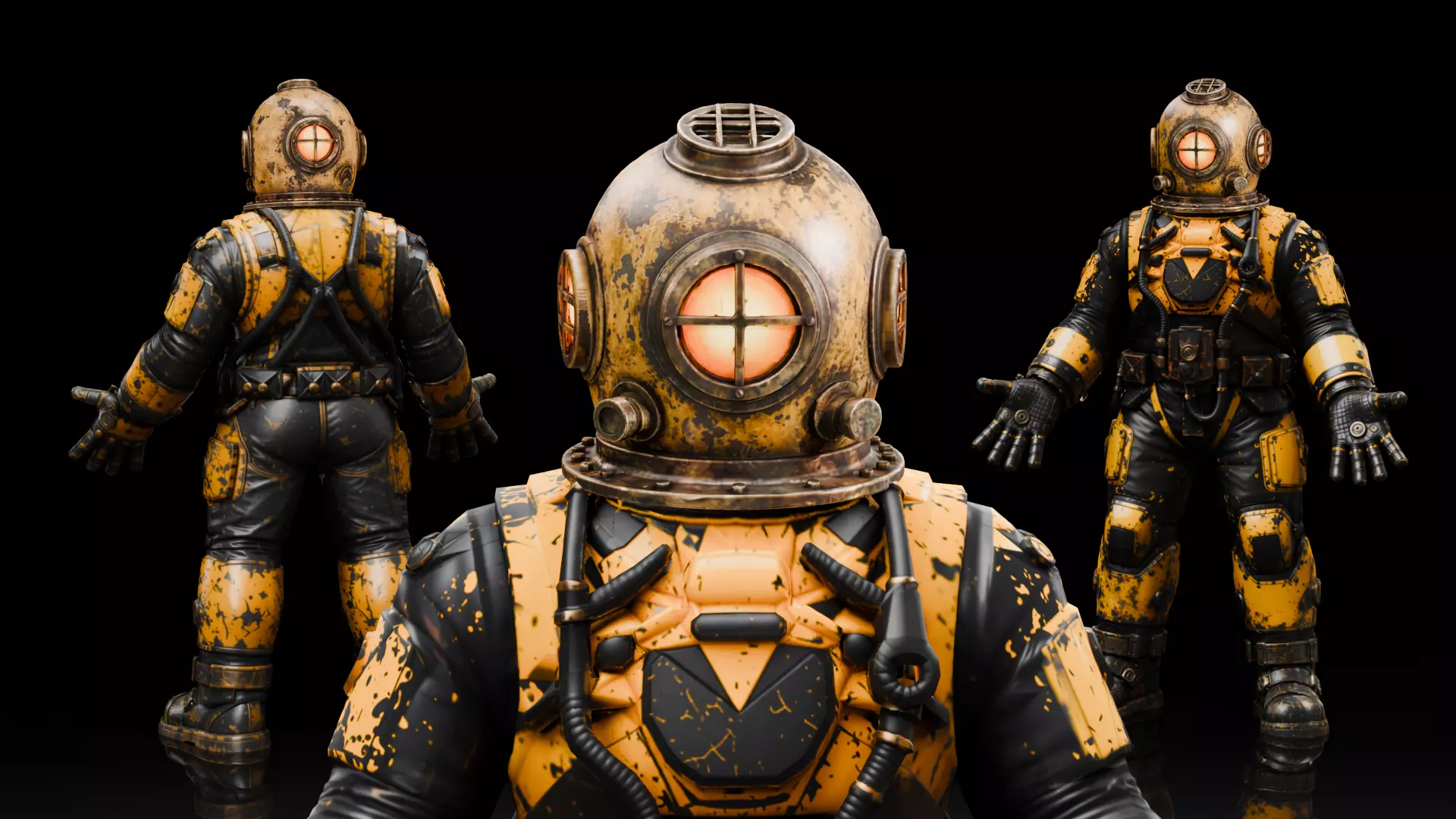 The model is optimized for real-time performance while maintaining strong visual detail, making it suitable for Unreal Engine, Unity, and other modern pipelines. The design combines historical deep sea diving gear with stylized steampunk aesthetics, creating a unique and recognizable character.