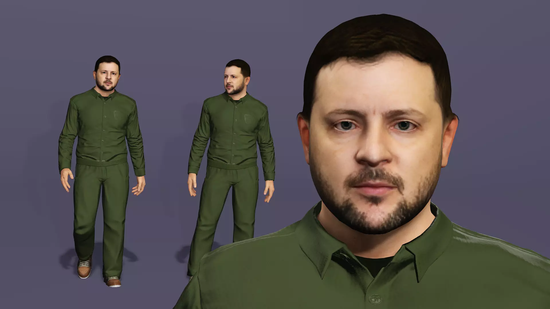 Realistic Male 3D Model, the character is 90% similar to the Ukrainian President Zelensky.