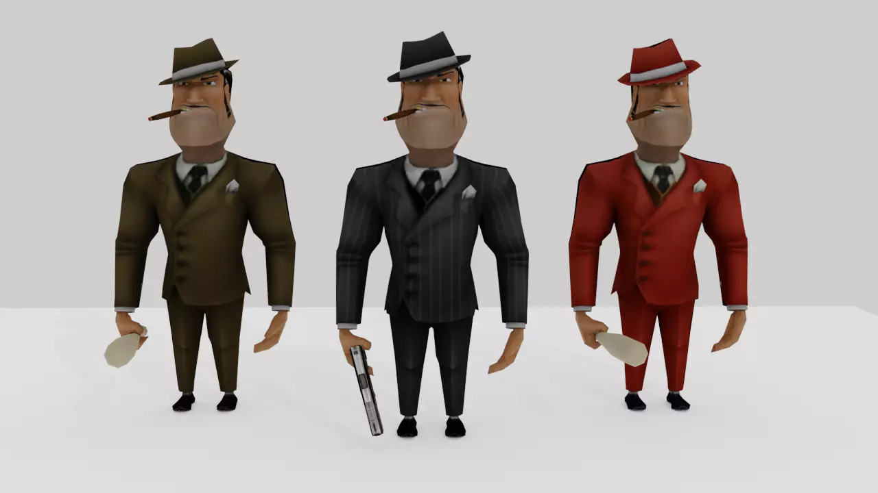 Low-poly Stylish Gangstar Rigged Character With 3 different outfit a gun and a baseball bat.Made with blender for making games in unity 3d, unreal engine and others game making software.Compatible with all mobile devices android, ios and windows phone.Gangstar Character Rigged and also included animations.