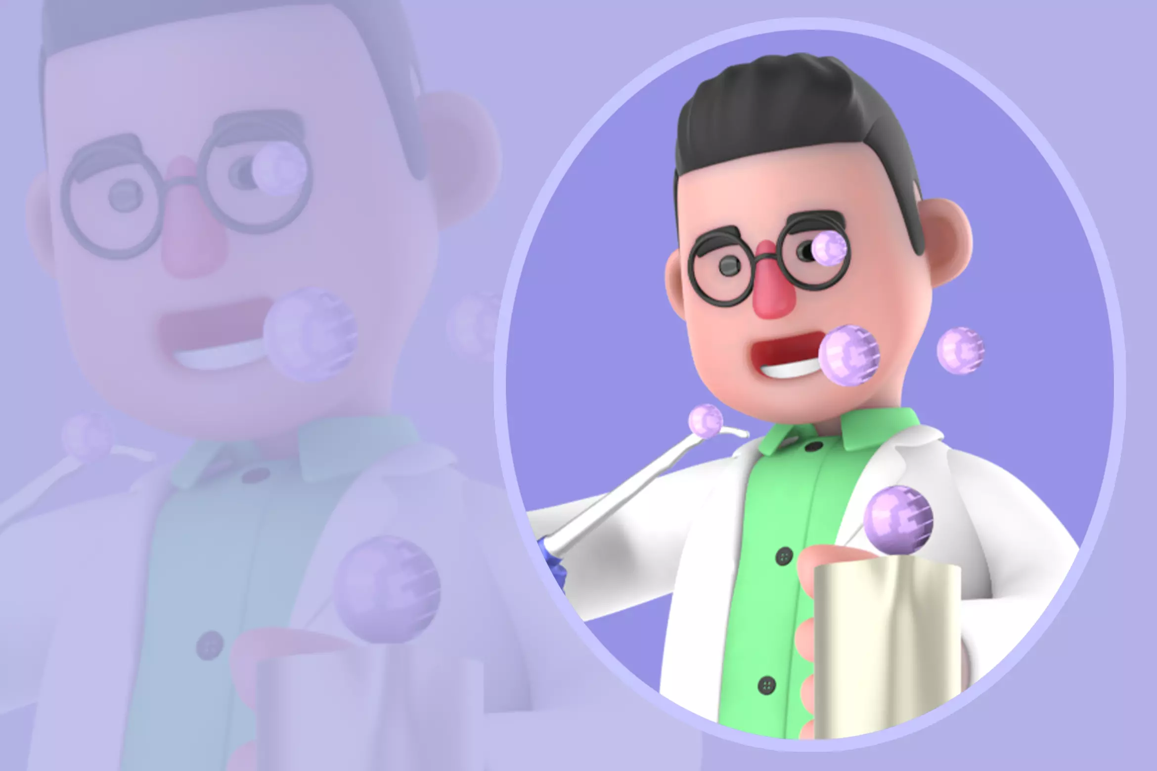 Ideal for educational projects, science themed storytelling, laboratory or nature related scenes, animations, presentations, or creative character visuals.