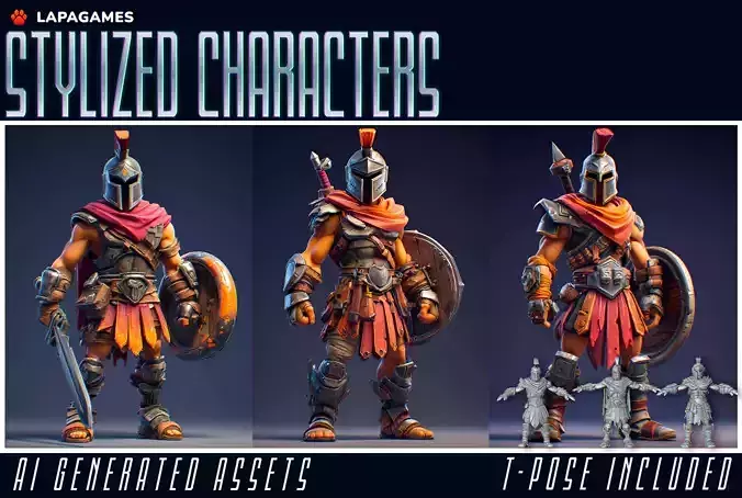 Every gladiator also comes in a clean T-pose version, making rigging and animation effortless, whether you're building an RPG, action game, cinematic, or just need a fierce placeholder with vibes.