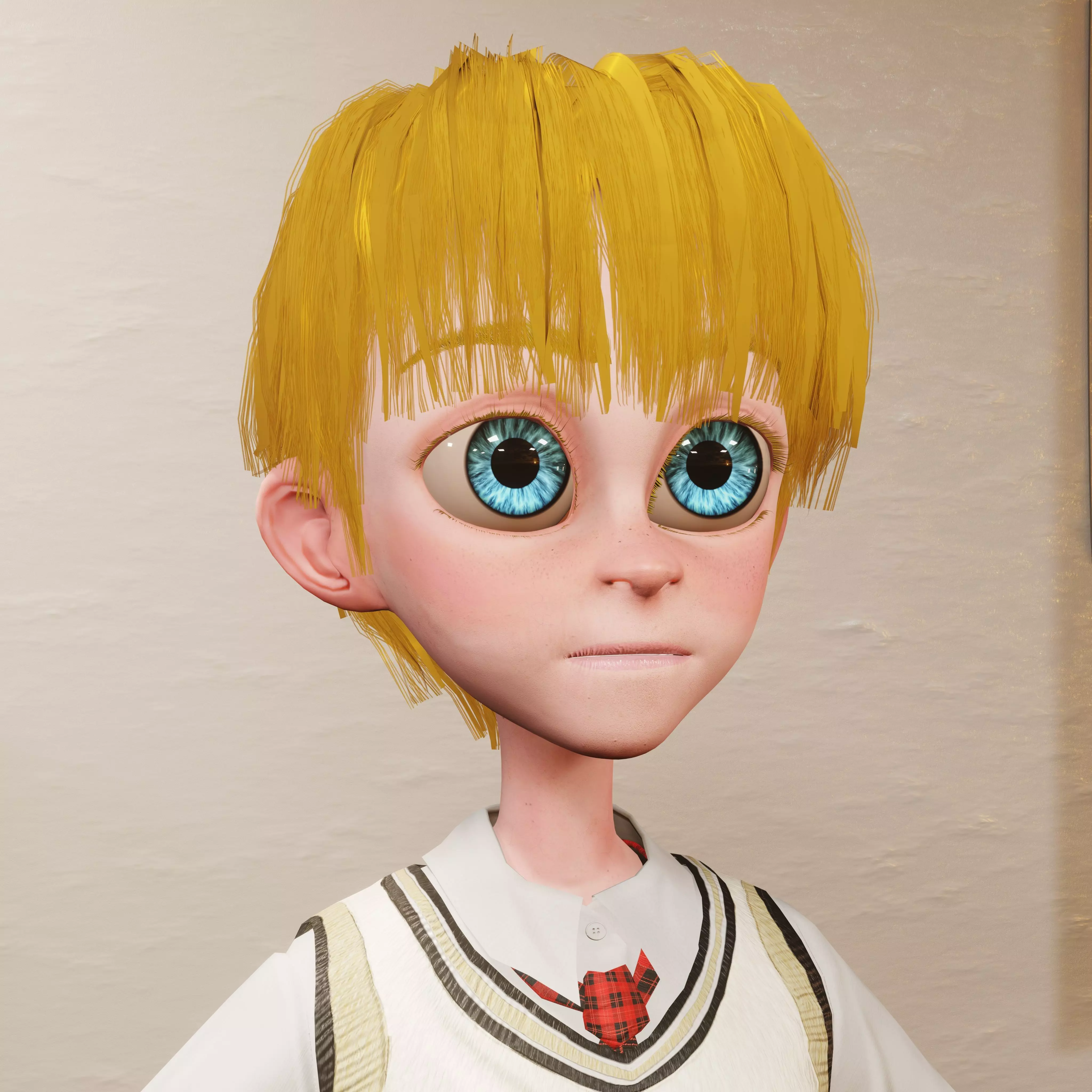Stylized male student character with a youthful, friendly look. Features include expressive eyes, short or messy hair, and a modern school uniform with a blazer, button-up shirt, and tie. Includes accessories like a backpack and headphones for a relaxed vibe. Ideal for anime, manga, or stylized projects needing a lively school character.