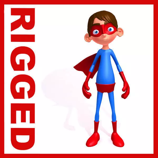 Features: -Cute Superhero Cartoon Rigged , ready for close up and HD renders. -High quality polygonal model, correctly scaled for an accurate representation of the original object. -Model’s resolutions are optimized for polygon efficiency. (In 3ds Max, the Meshsmooth function can be used to increase mesh resolution if necessary.) -Created with 3DSMax 2013 but available in a lower version and OBJ Clean mesh edge loops Only quad Objects, Materials and Textures use descriptive and unique names Scene objects organized by layers. -All colors can be easily modified. -Model is textured with all materials applied. -No cleaning up necessary—just drop your models into the scene and start rendering. -No special plugin needed to open scene. -Ready for rendering in Mental Ray. -Rigged Biped -File contains Tpose - Low polygonal and symmetrical topology - Rigged using bones and skin -Max file -NO RIGGING in MAYA Every model has been checked with the appropriate software.