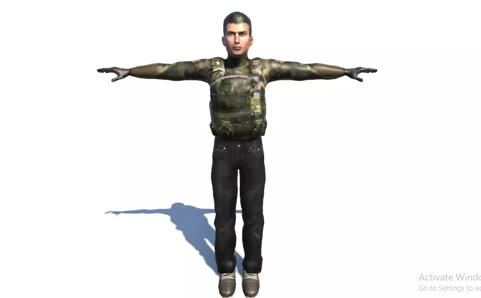 3d Model of Male shooter can be used in Survival Games or in any shooting games.The models comes with 3 different meshes :---High Poly Mesh (41726 Triangles and 22756 Vertices);--Mid Poly Mesh (11202 Triangles and 6585 Vertices);--Low Poly Mesh (5169 Triangles and 2184 Vertices);The models comes with the texture size 1024 * 1024.