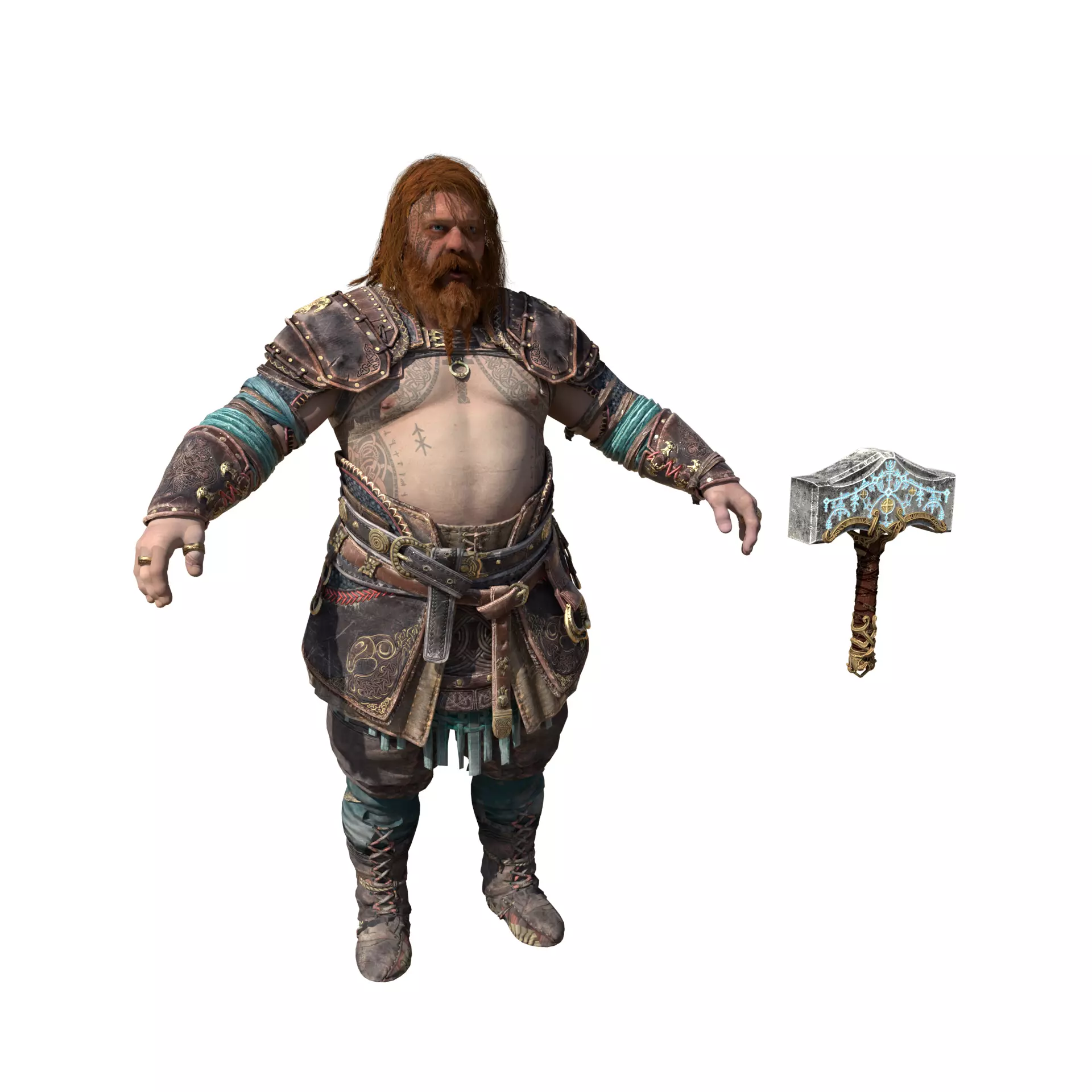 3D model of Thor from God of War Ragnarok and his mjolnir. T-pose