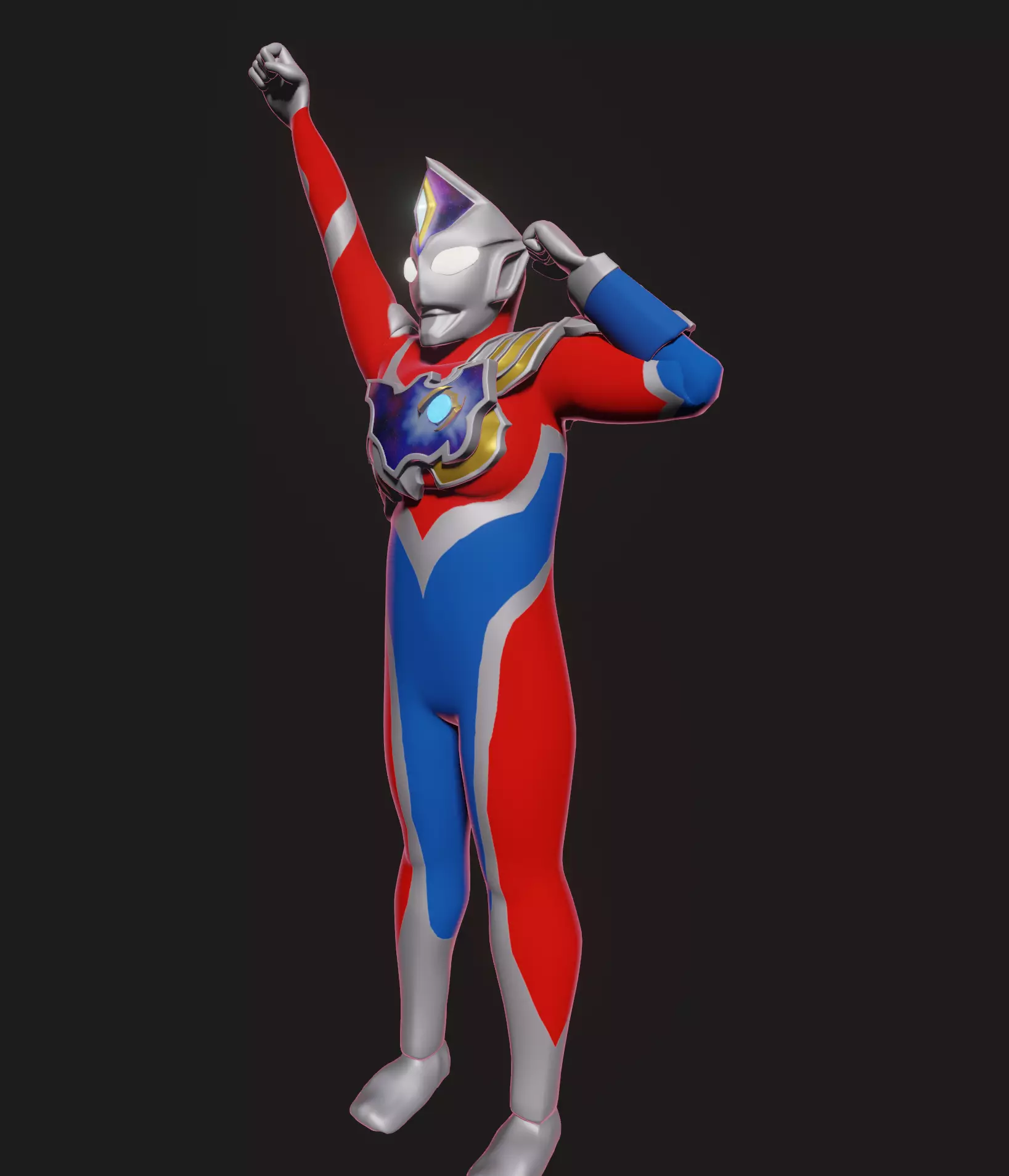 The model includes a rig,Animations include:・GunGun cut (appear_com)・Beam motion (beam_com)・Floating motion (huyuu_com)・Stand up motion (stand_com)・Landing motion (tyakuti_com)・Wait motion (wait_com)