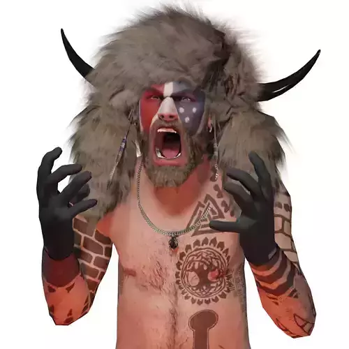The United States Capitol Invasion took place on January 6, 2021 and stood out among the invaders Jake Angeli, dressed in a Viking and known as Shaman Qanon.This is a rig model prepared for animation.You can use the blender addon auto rig pro to retarget the bones to use the mixamo animations.some accessories are using riggid body.Material PBR.Separate tattoos included.