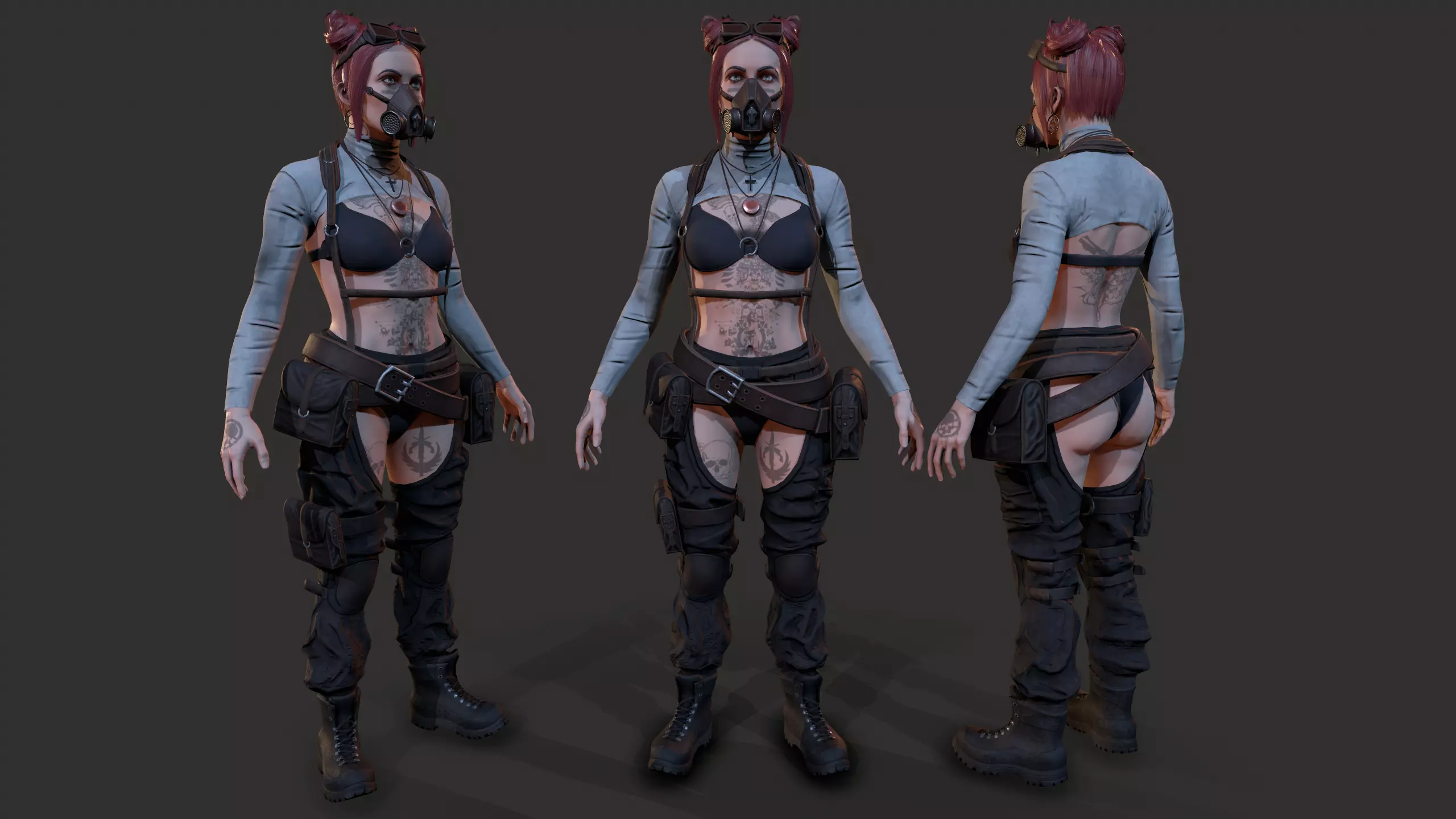 Wasteland girl 3d model, pbr textures, game-ready and low poly