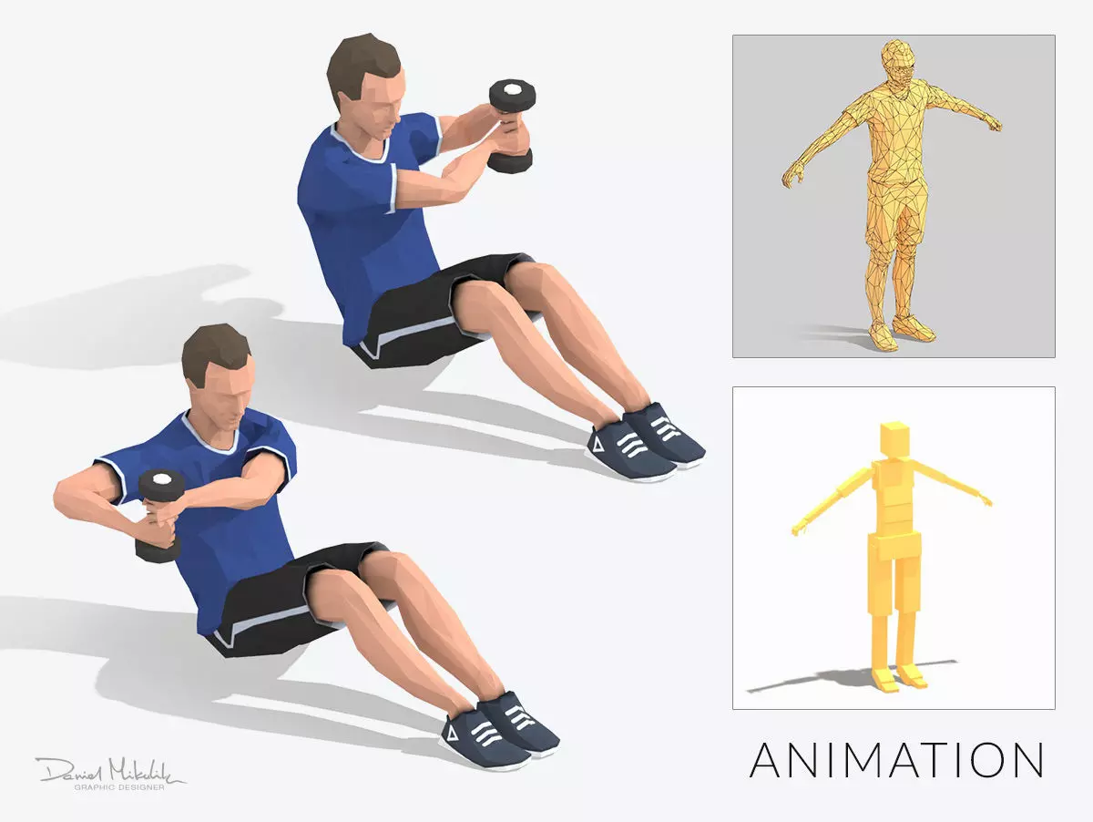 The model includes animations (movement or actions) that can be played in supported software or engines.