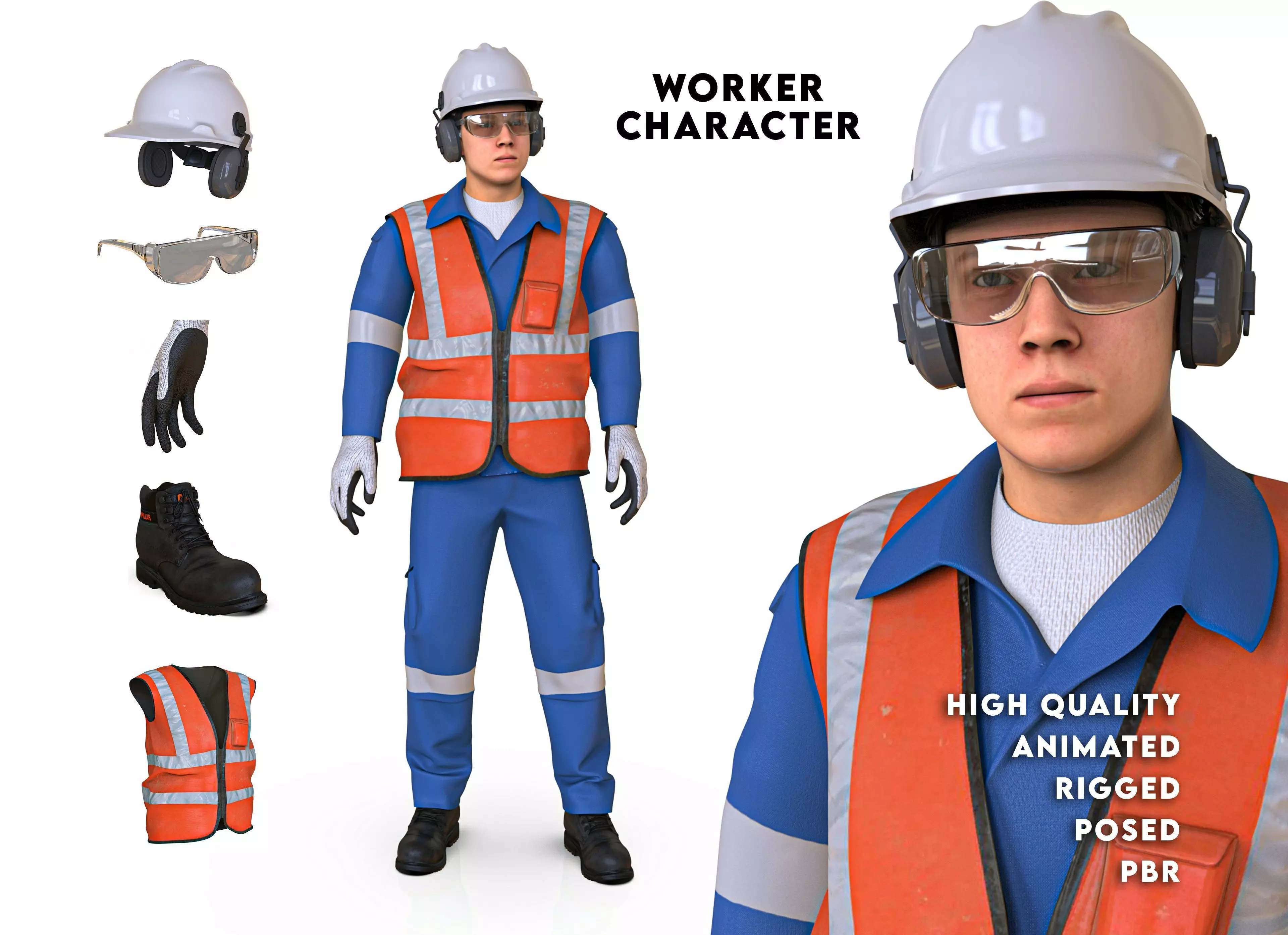 Male Worker Character with Equipment