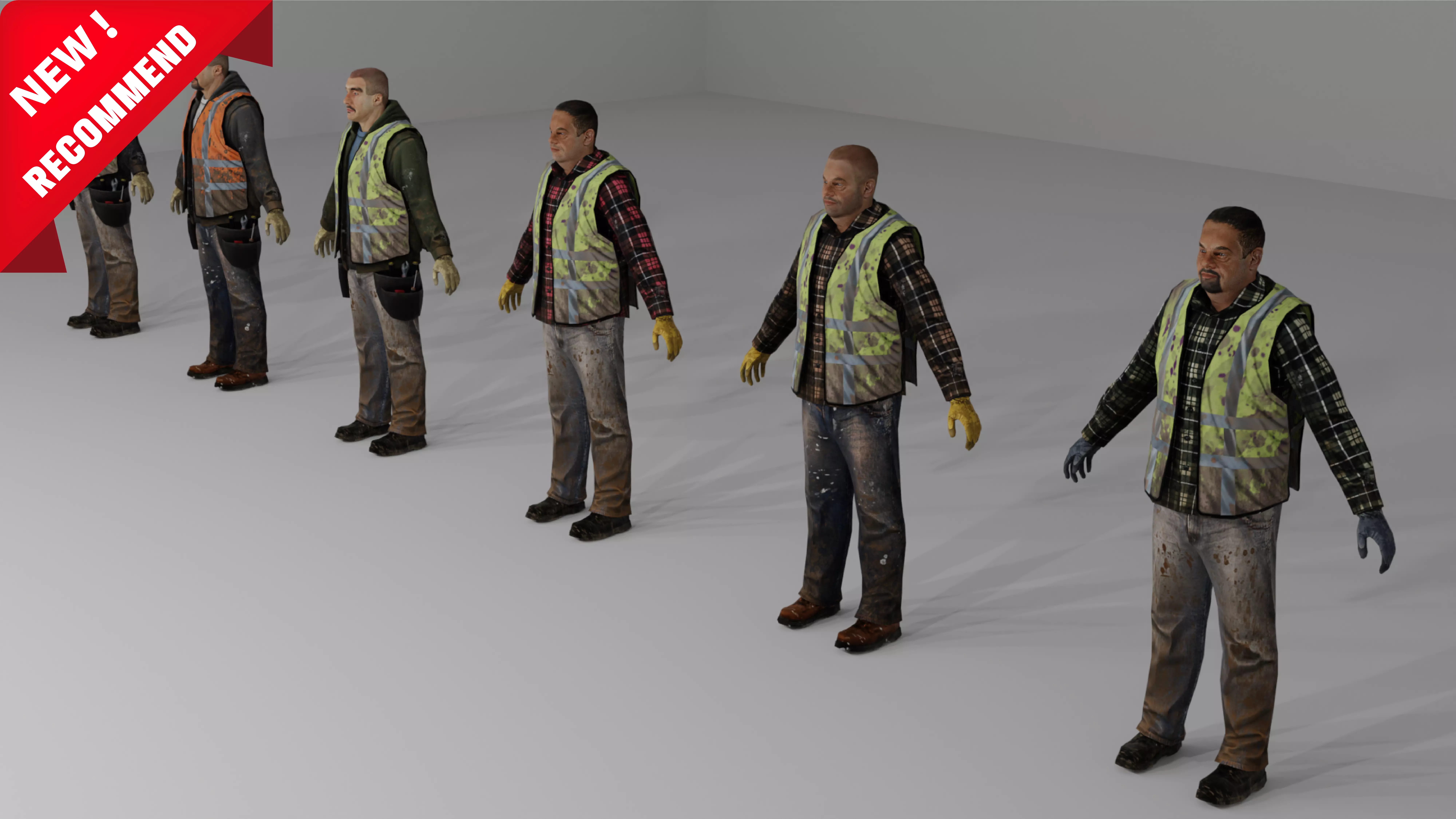 Worker Low-poly 3D model fbx, blend, obj, mtl file and PBR Texture, 6 face Texture designs