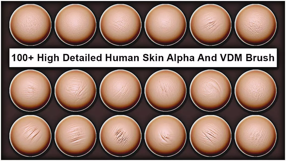 100+ High Detailed Human Skin Alpha And VDM Brushes